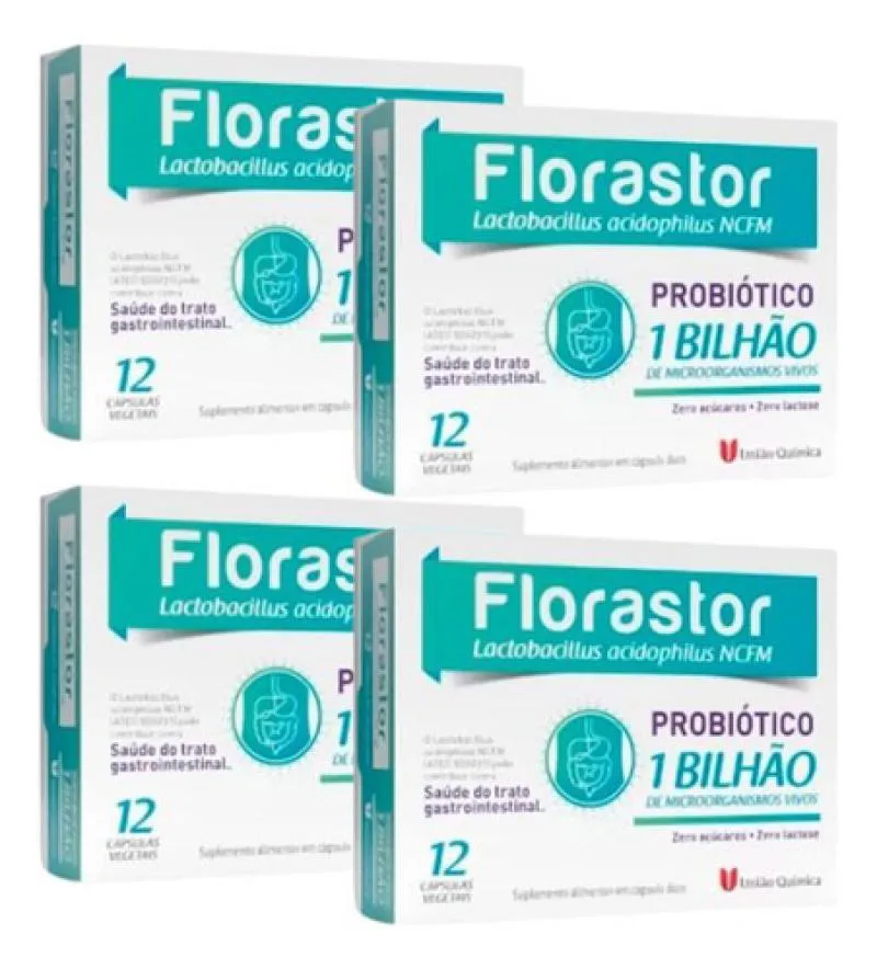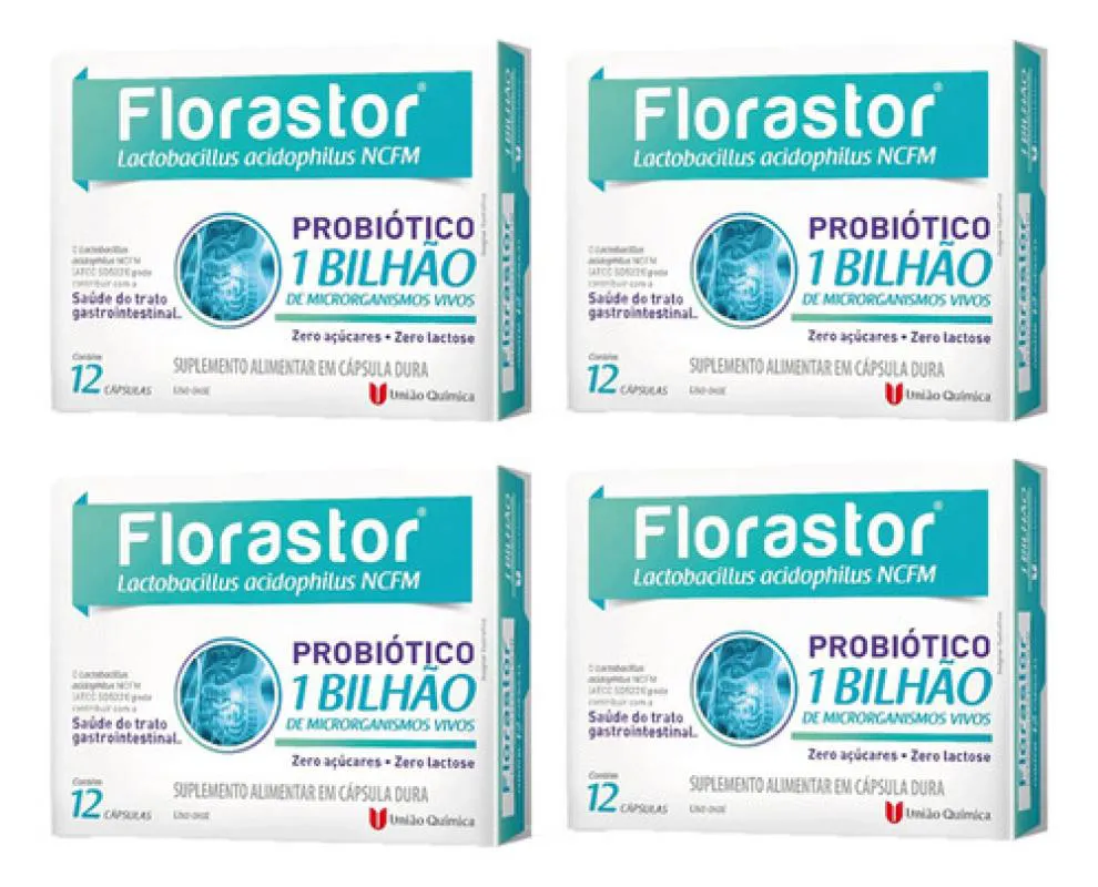 Kit 4 unidades Florastor 1 Bilhão Probiótico com 12 cápsulas Sabor sem Sabor