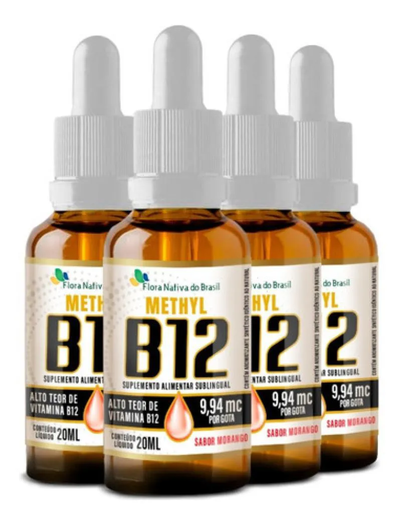Kit 4 Vitamina B12 Metilcobalamina Gotas 20Ml Sabor Morango - Flora Nativa A