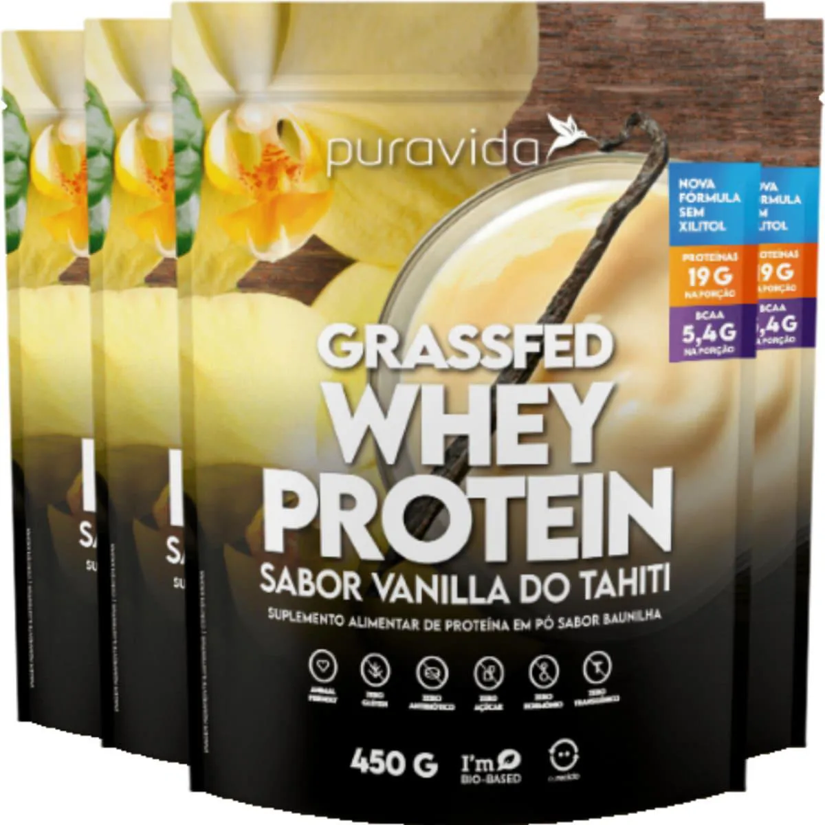 Whey Protein Grassfed Vanilla do Tahiti 4 X 450g Puravida