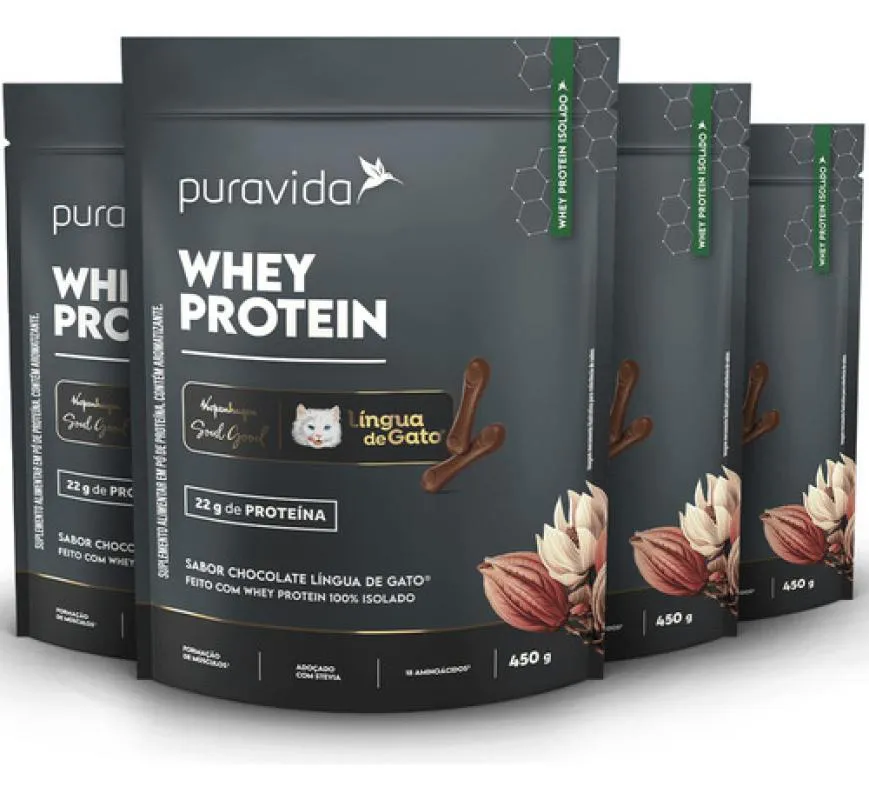 Kit 4 Whey Protein Isolado Lingua de Gato 450G - Puravida
