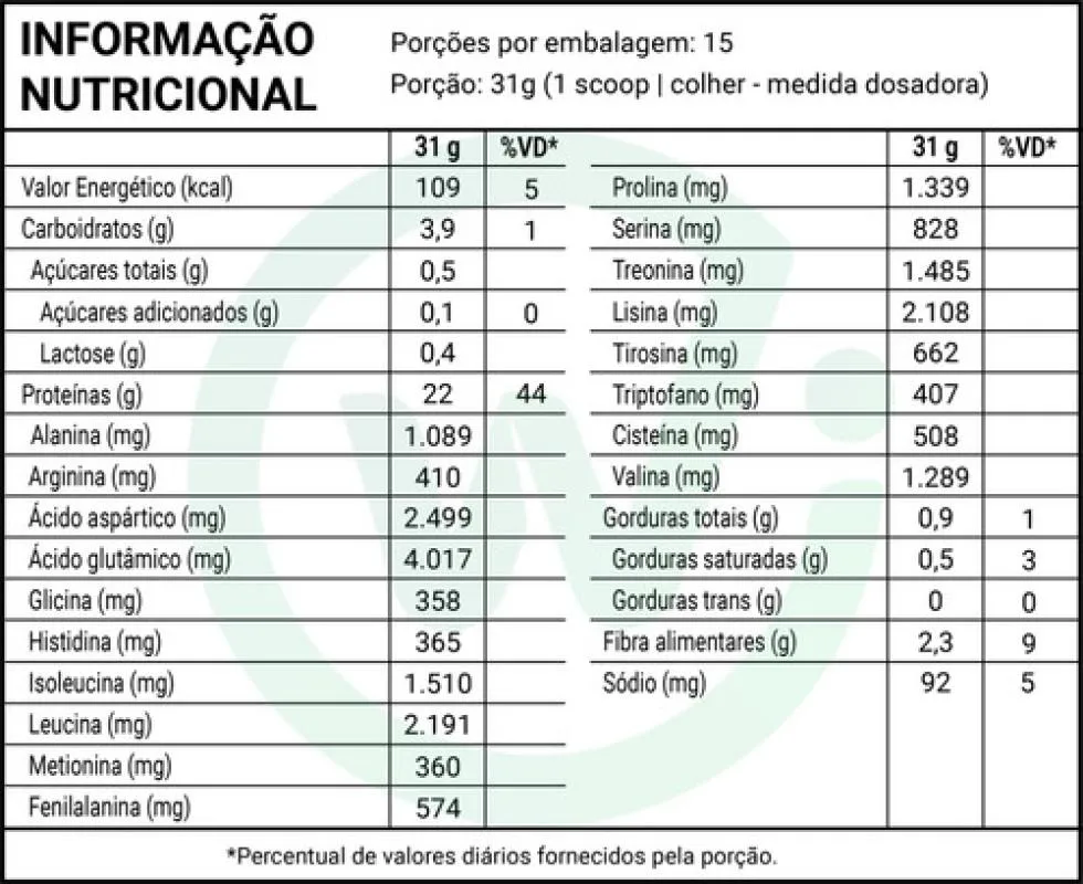 Proteína isolada do soro do leite, coadjuvante para construção e recuperação muscular — 22 g de proteína por porção de 31 g (1 scoop)  BCAAs: 4,8 g por porção, auxiliando na preservação da massa magra adoçantes naturais: estévia, eritritol e taumatina — sem adição de açúcar Livre de glúten e com baixo teor de carboidratos e gorduras — ótima opção para dietas restritivas Ingredientes adicionais: cacau, aromatizantes naturais, lecitina, goma xantana — sem corantes ou conservantes artificiais Alergênicos: contém derivados do leite e traços de noz; não indicado para veganos