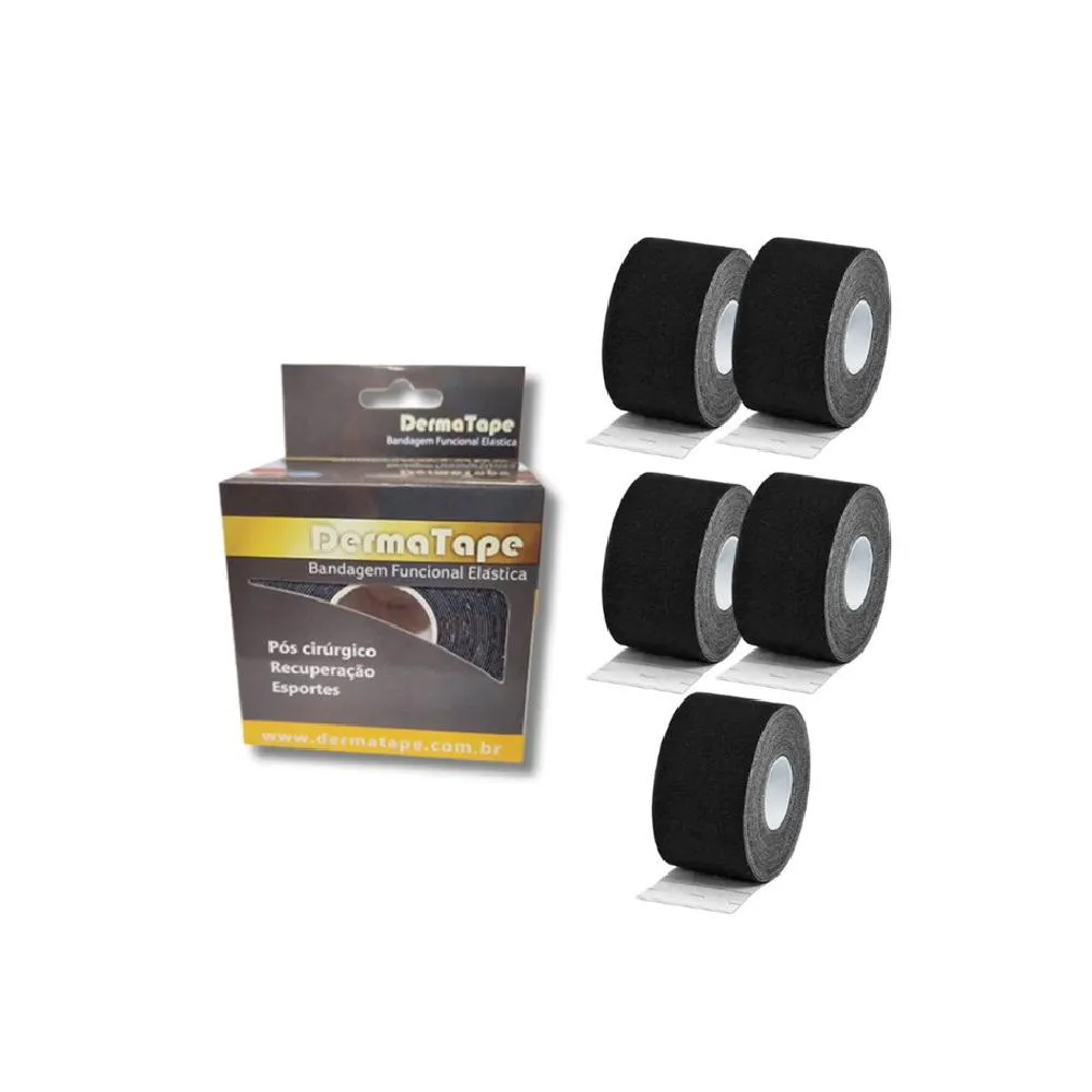 Kit 5 Bandagem Funcional Elástica Derma Tape Bioland Preta
