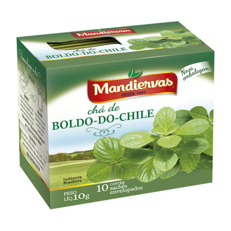 Detalhes do anúncio: 5 Caixinhas de Chá de Boldo-do-Chile com 10 sachês de 1g cada (total de 50 Sachês de 1g).