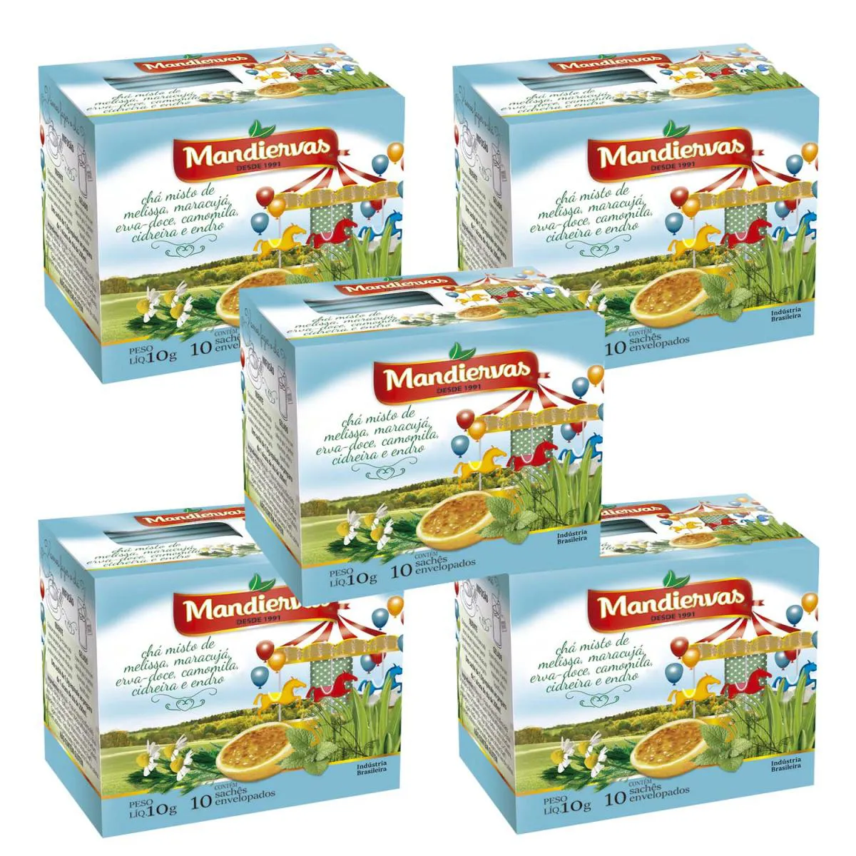 Detalhes do anúncio: 5 Caixinhas de Chá Infantil com 10 sachês de 1g cada (total de 50 Sachês de 1g).