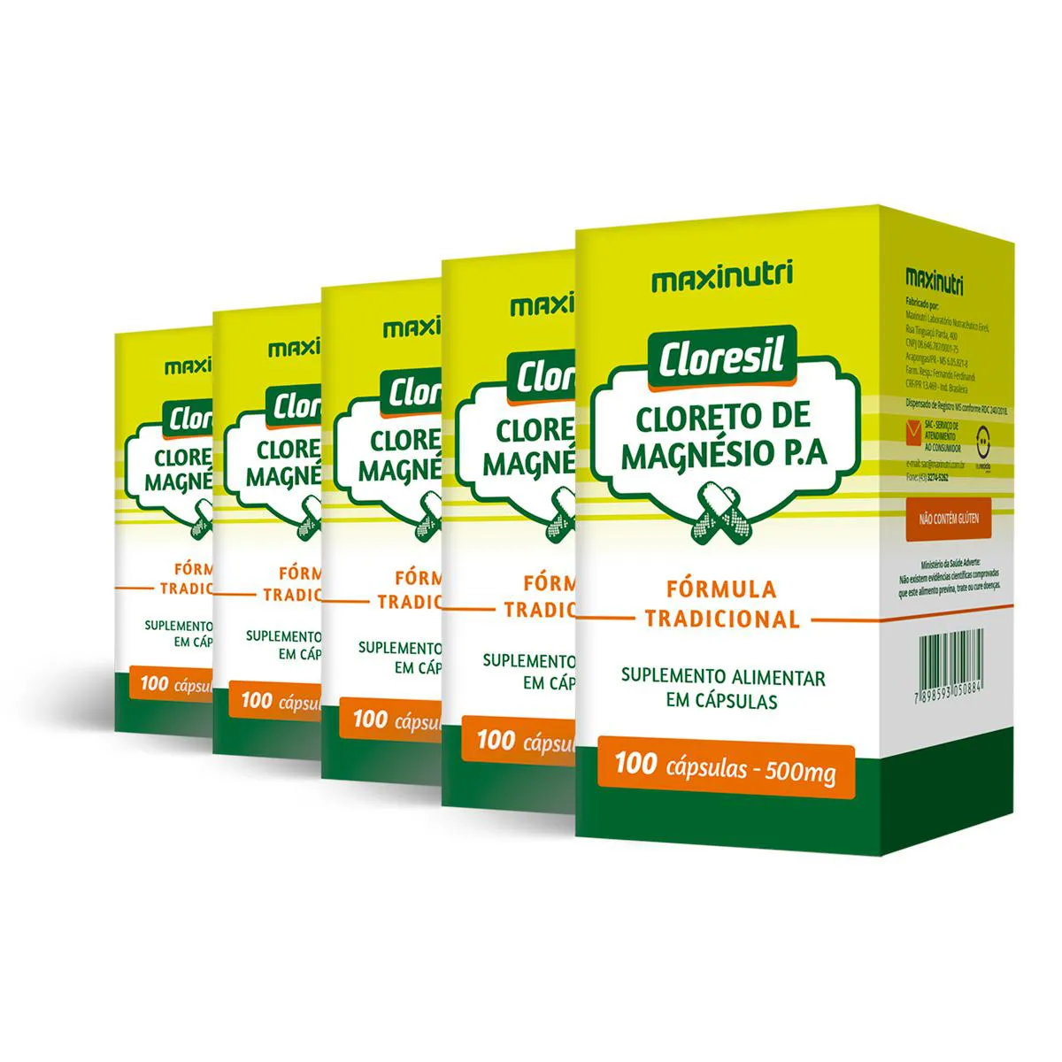 Kit 5 Cloresil (Cloreto de Magnésio P.a) Maxinutri 100 Cápsulas