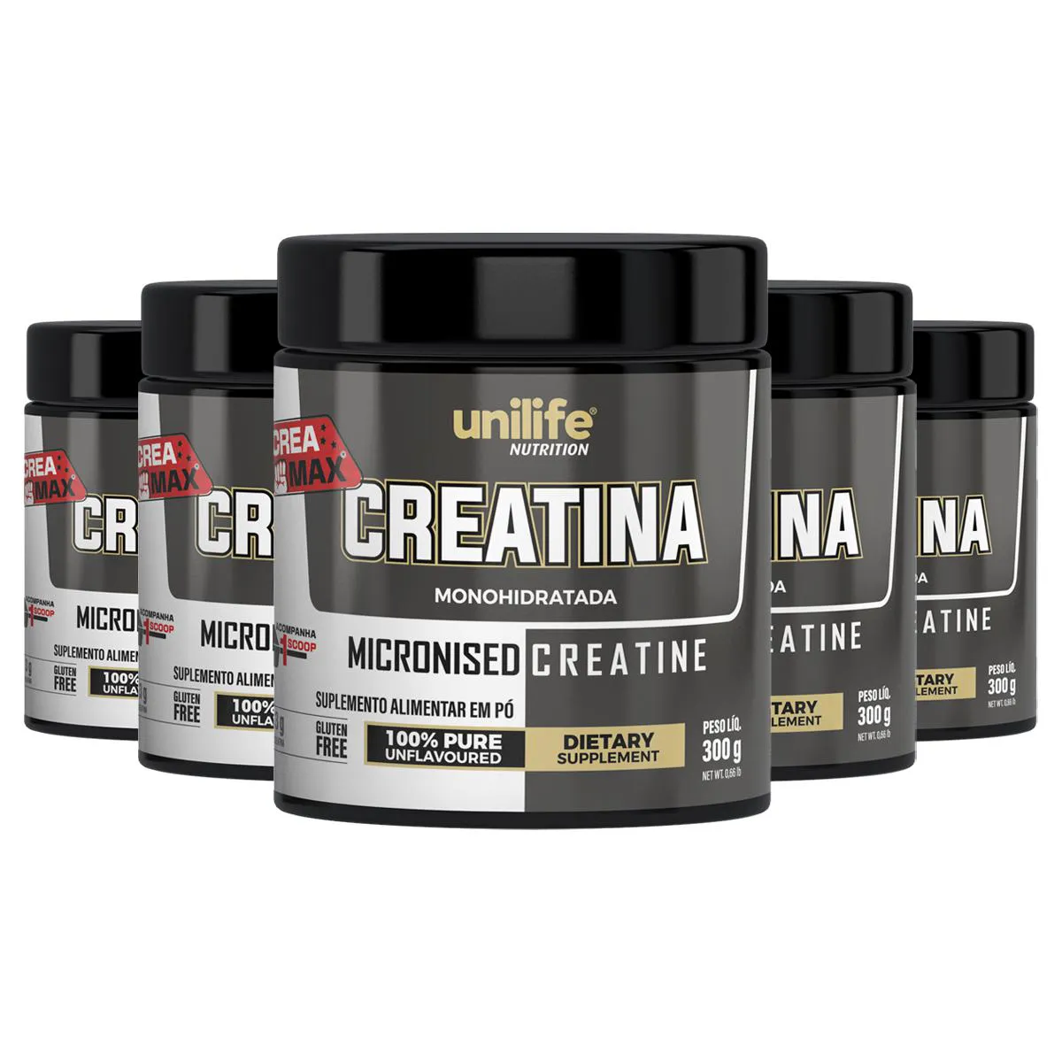 Kit 5 Creatina Pura Atp Monohidrata 300G Unilife