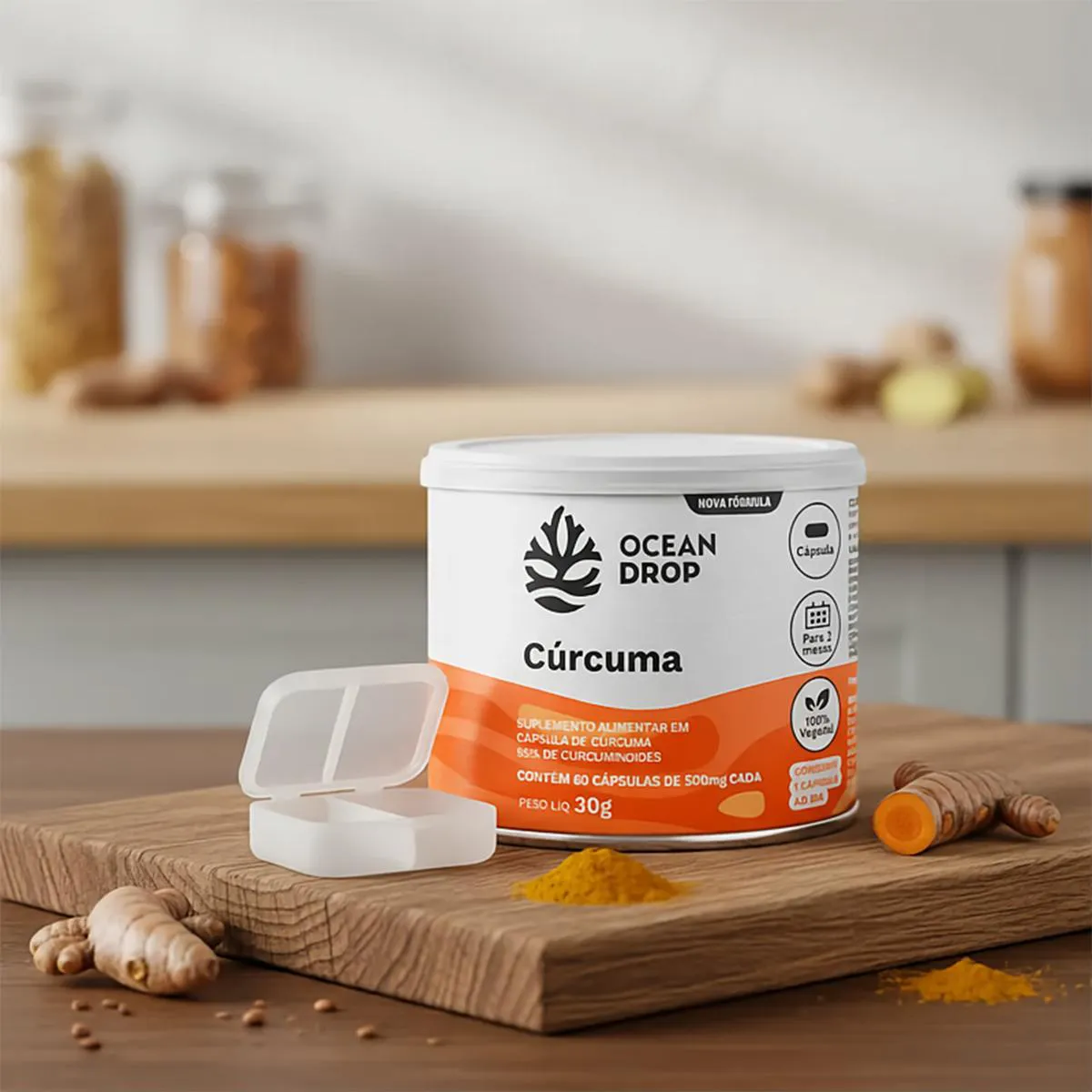 Kit 5 Cúrcuma Ocean Drop 60 Cápsulas + Porta Cápsulas Ingredientes:
