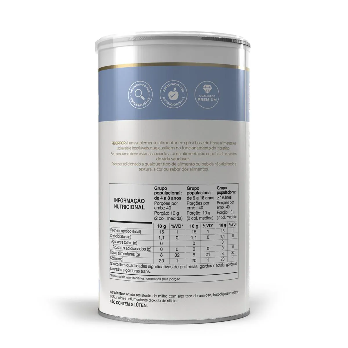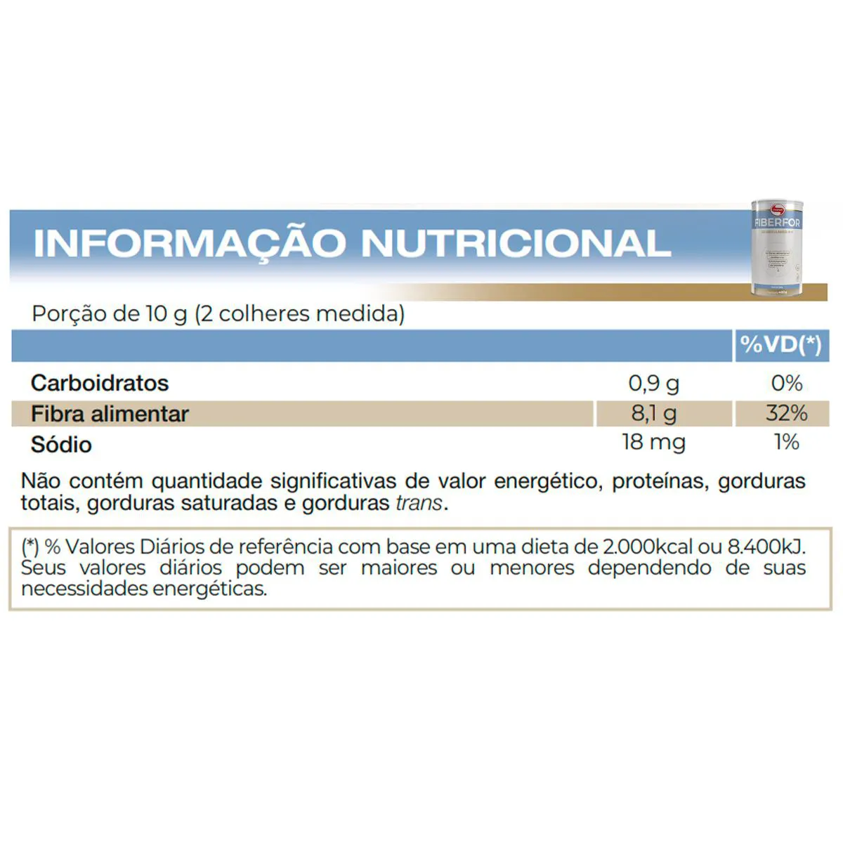FIBERFOR é uma fonte de fibras alimentares solúveis e insolúveis que auxiliam o funcionamento do intestino. Seu consumo deve estar associado a uma alimentação equilibrada e hábitos de vida saudáveis. Pode ser adicionado a qualquer tipo de alimento ou bebida, não alterando a textura, a cor ou sabor dos alimentos. Apresentação: