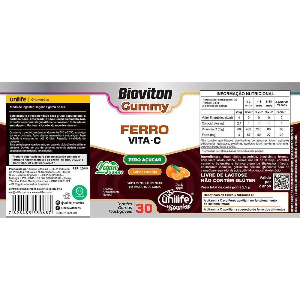 Kit 5 Gummy Ferro + vitamina c Sabor Laranja Unilife 30 Gomas