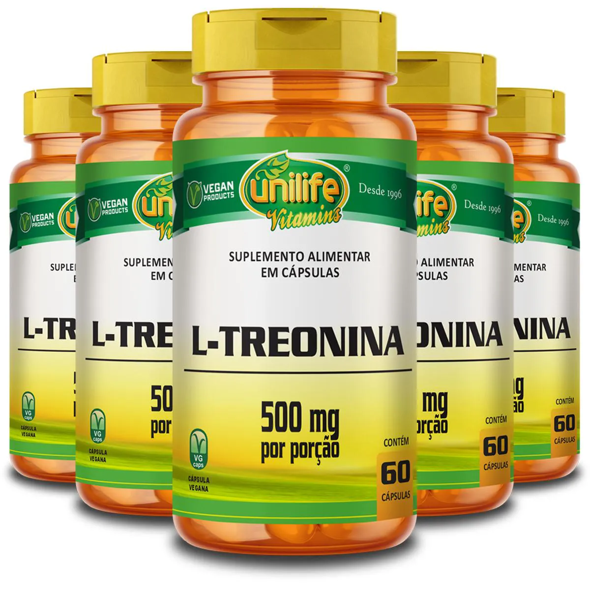Kit 5 L-Treonina Unilife 500Mg 60 Cápsulas