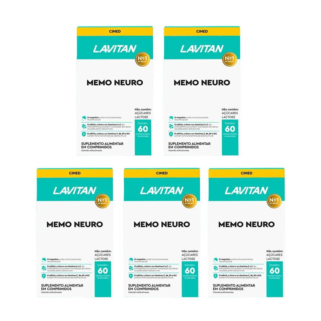 Kit 5 Lavitan Memo Neuro Memória - 60 Caps - Cimed