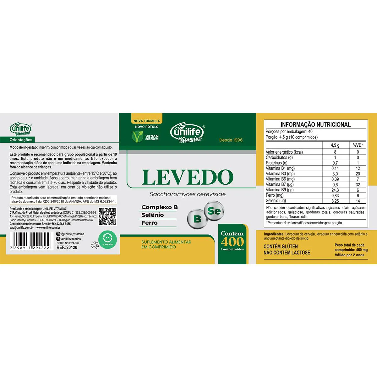 Levedo de cerveja complexo B da Unilife é um suplemento com base vitamina B, o levedo de cerveja da sua composição é rico nessa vitamina além de ter diversos outros nutrientes chamativos como fibras e proteínas, seus benefícios são amplos o mais conhecido é a melhora na saúde, pois a vitamina b tem grande importância no corpo humano, até mesmo para o emagrecimento, um dos maiores atrativos deste produto é seu preço, é um dos melhores custo benefícios do mercado.
