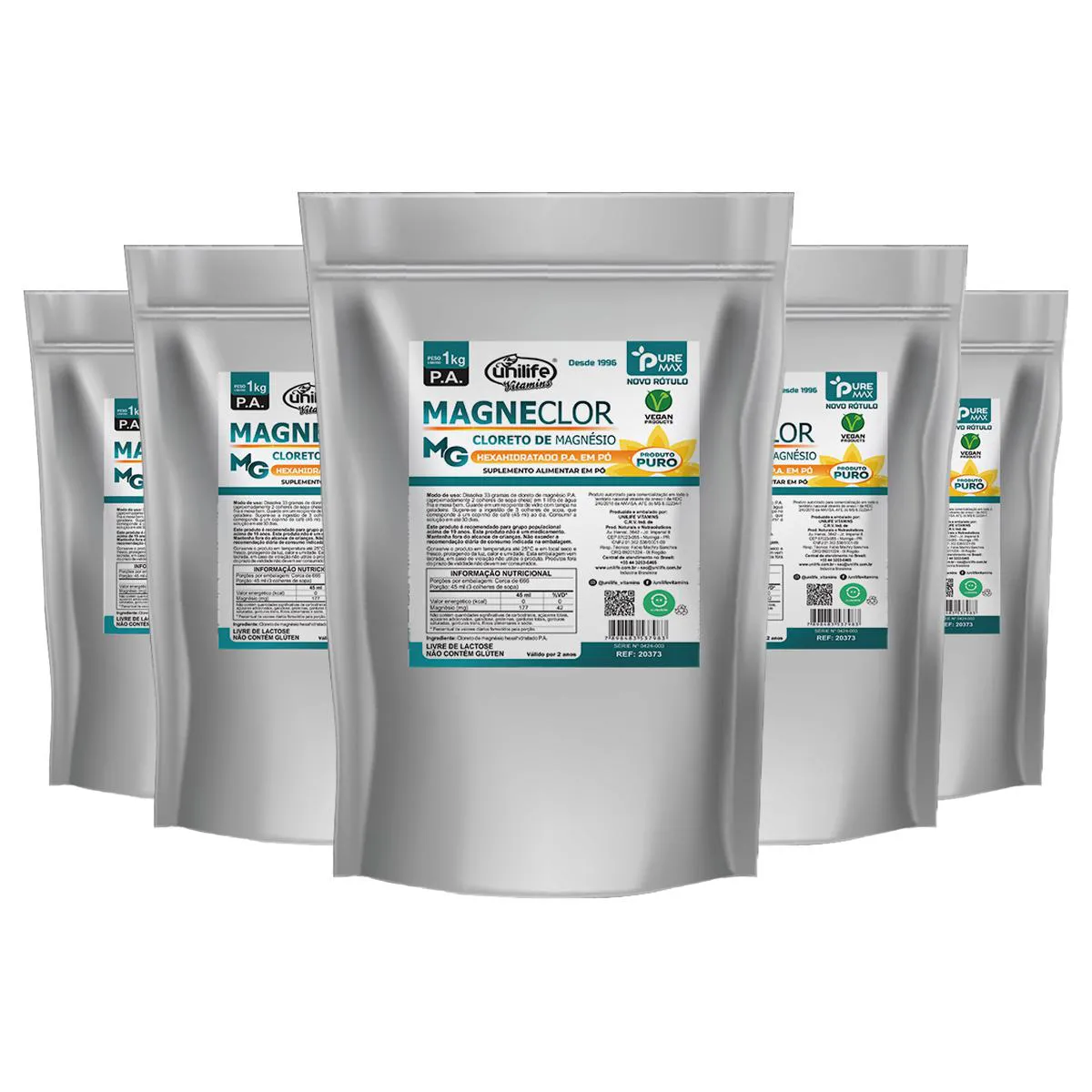 Kit 5 Magneclor Cloreto de Magnésio P.a Unilife 1Kg