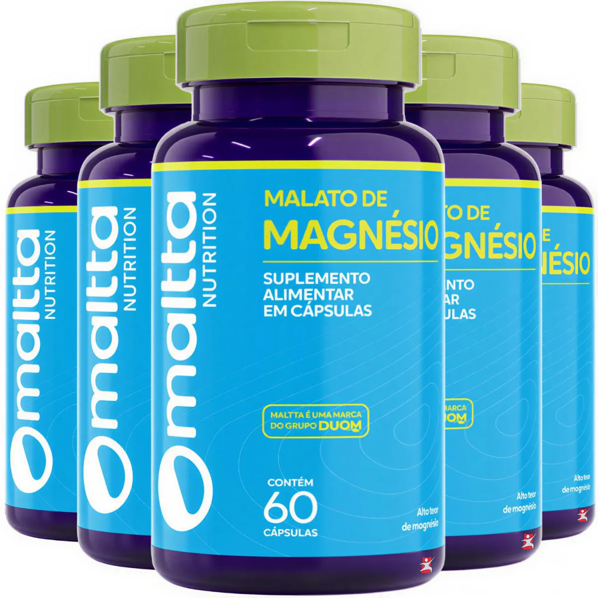 COMBO COM 5 MAGNÉSIO MALATO 100% PURO SUPER mineral 60 CÁPSULAS CADA – TOTAL: 300 CÁPSULAS – DUOM _x000D_ _x000D_ — descrição — INDÚSTRIA DO corpo _x000D_ O Magnésio participa em mais de 350 reações enzimáticas no organismo humano. Auxilia na formação de ossos e dentes, no metabolismo energético de proteínas, de carboidratos e de gorduras. O magnésio auxilia no funcionamento muscular e neuromuscular e no equilíbrio de eletrólitos.Na forma de MALATO tem sua absorção muito superior ao Magnésio comum (cloreto). _x000D_ É um poderoso complemento vitamínico mineral para quem precisa ativar hormônios e enzimas e, ainda, melhorar a função cardíaca, é um dos minerais mais importantes em nosso organismo, que contribui para melhor equilíbrio e saúde do corpo. _x000D_ _x000D_ — benefícios — INDÚSTRIA DO CORPO _x000D_ - Combate dores no corpo; _x000D_ - Combate dores nas articulações; _x000D_ - Auxilia no transporte de cálcio para ossos; _x000D_ - Combate câimbras; _x000D_ - Excelente na luta contra as dores fibromialgia; _x000D_ - Combate dores de cabeça e enxaqueca; _x000D_ - Regula o coração: batimentos cardíacos; _x000D_ - Melhorar o desempenho físico, porque é importante para a contração muscular; _x000D_ - Auxilia na prevenção da osteoporose, porque ajuda a produzir hormônios que aumentam a formação do osso; _x000D_ - Ajuda a controlar a diabetes, porque regula o transporte do açúcar; _x000D_ - Diminui o risco de doença coronária, pois pode diminuir o acumulo de placas de gordura na parede das artérias; _x000D_ _x000D_ -Outros benefícios do magnésio- _x000D_ - Bom funcionamento cerebral; _x000D_ - Diminui a insônia; _x000D_ - Ajudar a rejuvenescer e evitar o envelhecimento do corpo; _x000D_ - Fortalecimento dos ossos; _x000D_ - Prevenção de infecções. _x000D_ _x000D_ — sugestão de uso — INDÚSTRIA DO CORPO _x000D_ Tomar 2 cápsulas ao dia. _x000D_ _x000D_ — tabela nutricional — INDÚSTRIA DO CORPO _x000D_ ANEXO NAS IMAGENS. _x000D_ _x000D_ — composição — INDÚSTRIA DO CORPO _x000D_ ANEXO NAS IMAGENS. _x000D_ _x000D_ — recomendações — INDÚSTRIA DO CORPO _x000D_ ANEXO NAS IMAGENS. _x000D_ _x000D_ — dados técnicos — INDÚSTRIA DO CORPO _x000D_ Marca – Duom. _x000D_ Conteúdo líquido por frasco – 60 cápsulas. _x000D_ Conteúdo líquido total – 300 cápsulas. _x000D_ Rendimento por frasco – 30 porções/doses. _x000D_ Rendimento total – 150 porções/doses. _x000D_ Peso líquido por frasco - 30g. _x000D_ Peso líquido total – 150g. _x000D_ Peso aproximado produto + embalagem - 400g. _x000D_ Código de barras (EAN) – 7898958836900. _x000D_ Registro ANVISA – Dispensado de registro de acordo com a resolução da RDC 27/2010 e RDC 240/2018 da ANVISA. _x000D_ Dimensões do produto – largura: 6 cm; altura: 10 cm; comprimento: 6 cm. _x000D_ Dimensões da embalagem/pacote - largura: 13 cm; altura: 7 cm; comprimento: 16 cm. _x000D_ _x000D_ — itens do anúncio — INDÚSTRIA DO CORPO _x000D_ 5 Unidades do produto: MAGNÉSIO MALATO 100% PURO SUPER MINERAL 60 CÁPSULAS CADA – DUOM. _x000D_ Total – 300 Cápsulas.