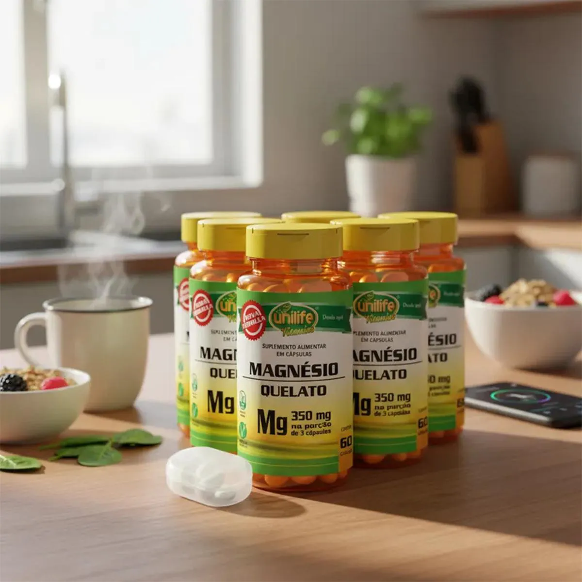 Kit 5 Magnésio Quelato Unilife 60 Cápsulas + Porta Cápsulas Informações sobre o produto: