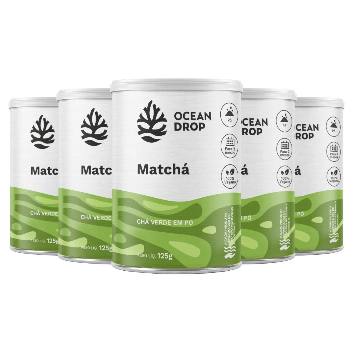 Kit 5 Matchá em Pó Chá Verde Ocean Drop Vegano 125G
