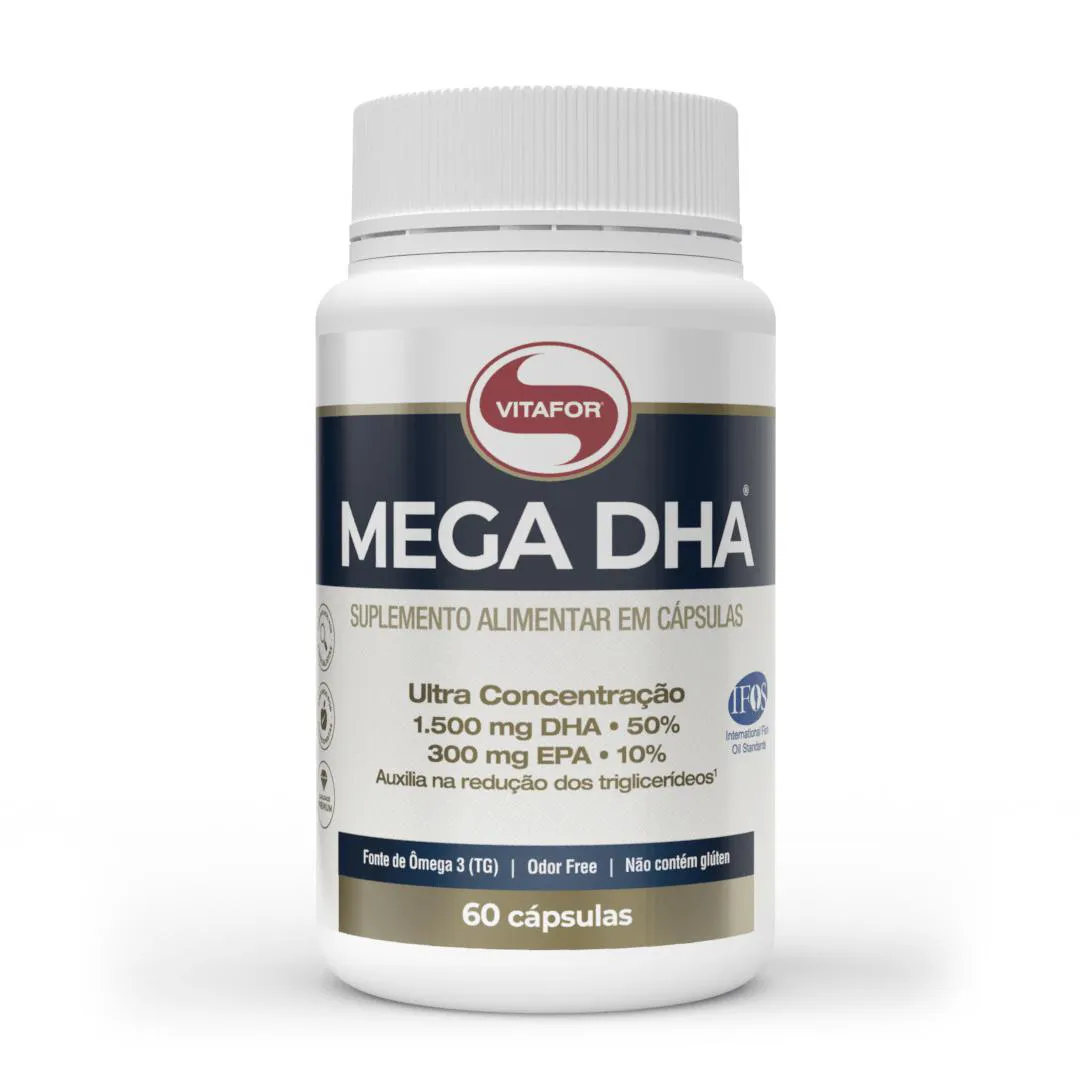 O Mega DHA é um suplemento alimentar à base de óleo de peixe, produzido na forma de triglicerídeos (TG), que contém ácidos graxos ômega 3 EPA e DHA extraídos de águas frias e profundas de regiões polares. Trata-se de um produto premium com certificação internacional de pureza e qualidade.