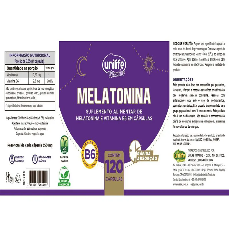 O que é e para que serve o Kit 5 Melatonina + B6 Unilife 60 Cápsulas?