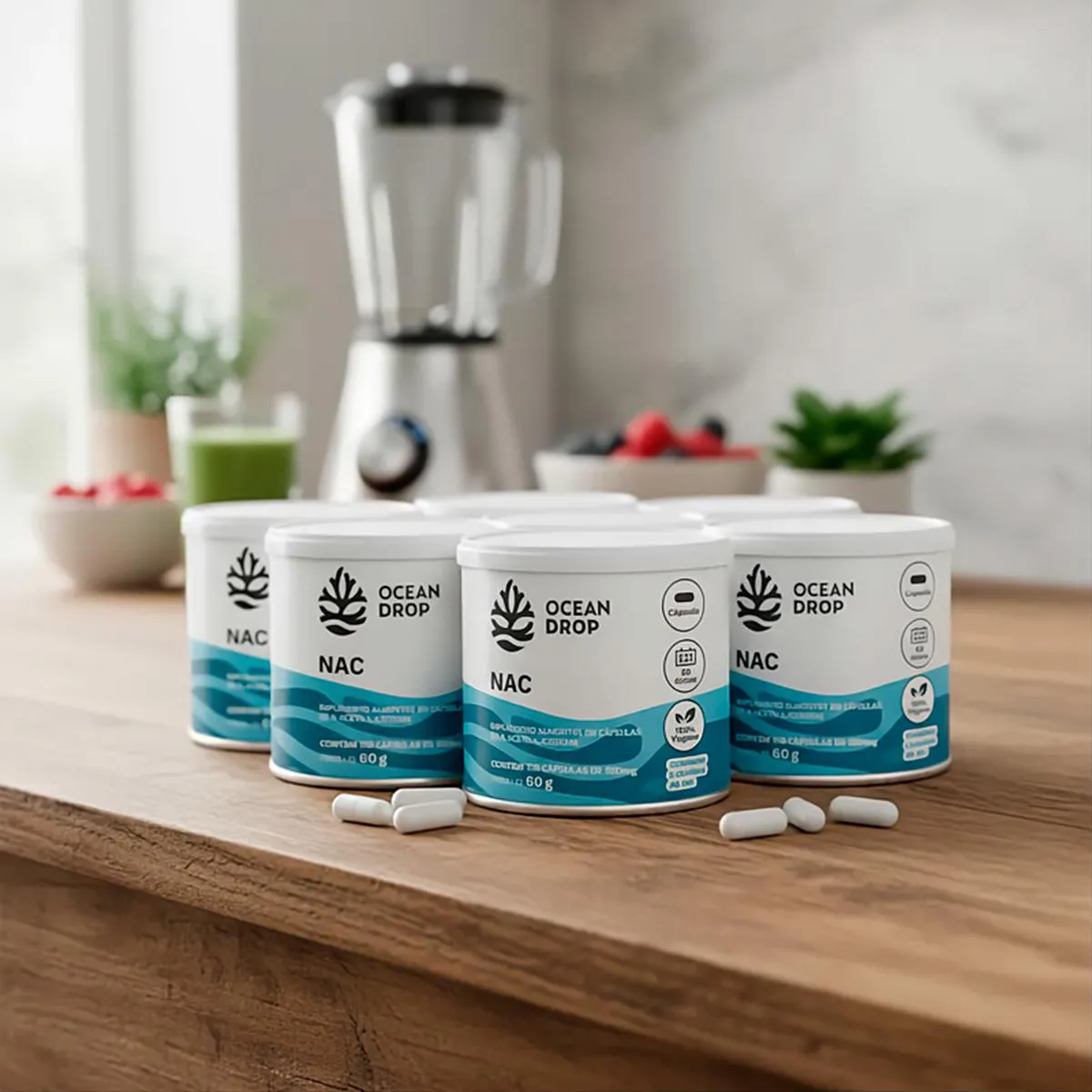 Kit 5 NAC Ocean Drop Vegano 120 Cápsulas + porta cápsulas Ingredientes: