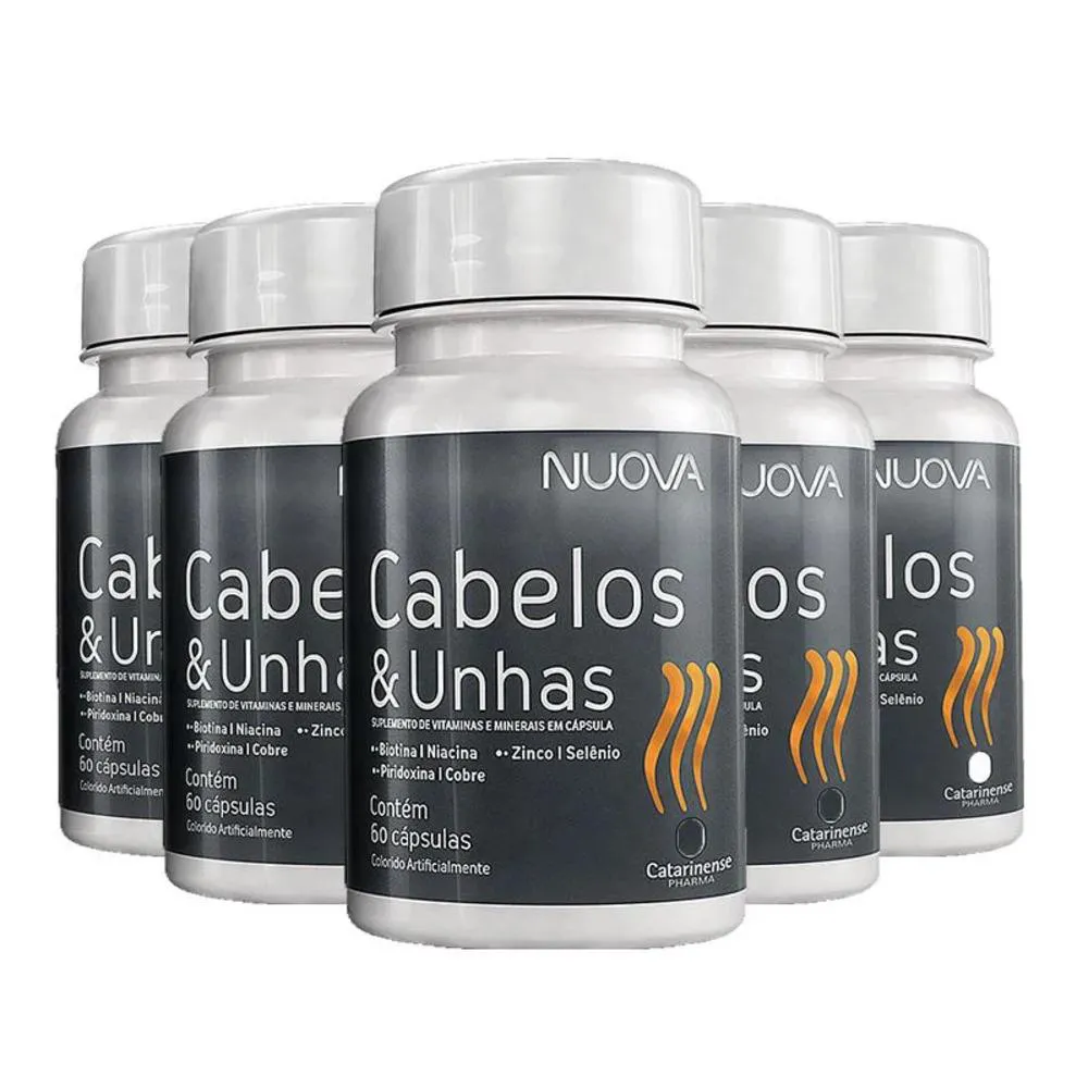 Kit 5 Nuova Cabelos e Unhas Biotina Catarinense 60 Cápsulas