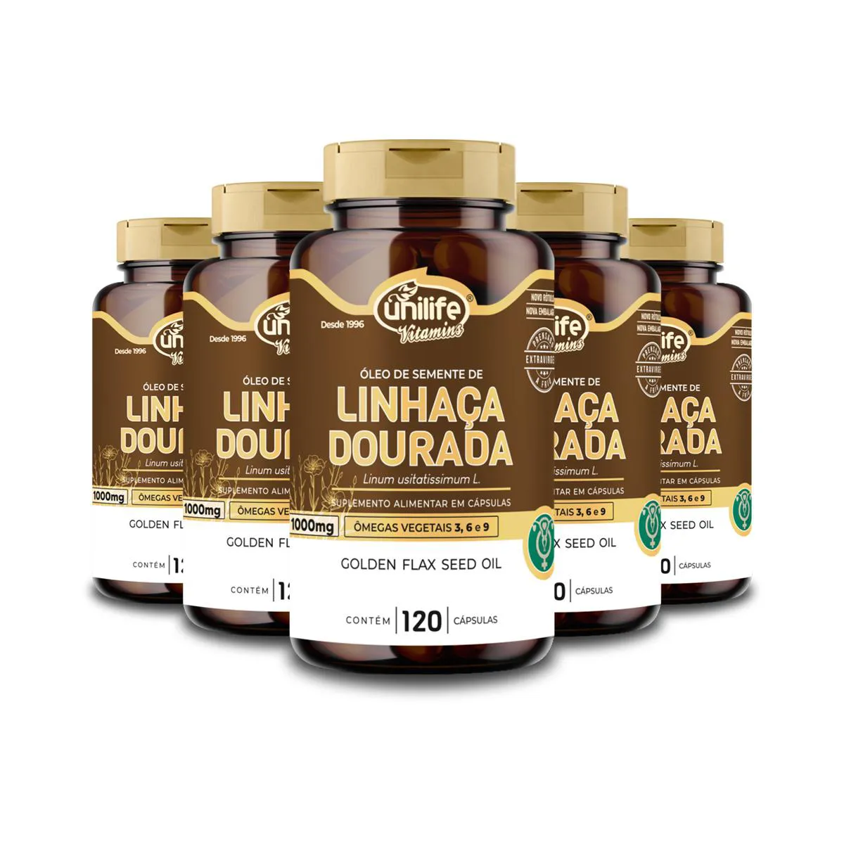 Kit 5 Óleo de Semente de Linhaça Dourada Unilife 120 Cápsulas