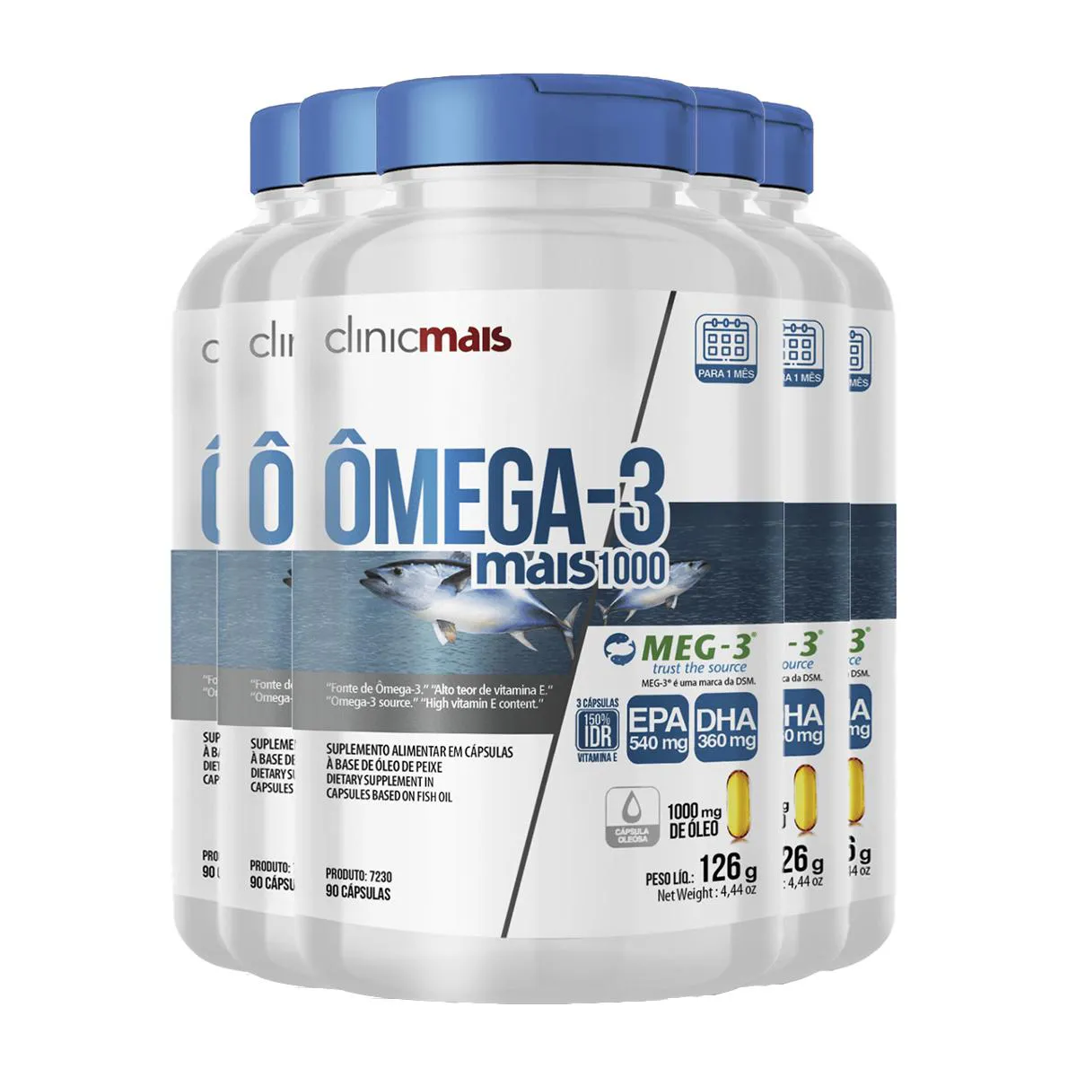 Kit 5 Ômega 3 Mais 1000Mg Clinicmais 90 Cápsulas