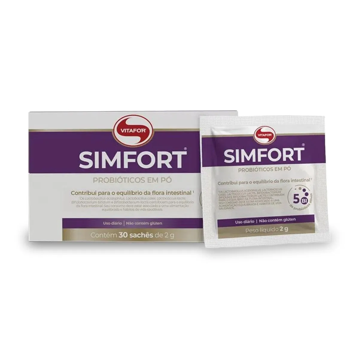 Kit 5 Simfort Mix de probióticos Vitafor 30 Sachês de 2g SIMFORT é um suplemento alimentar composto pela associação de cinco cepas probióticas que contribuem para o equilíbrio da flora intestinal. Diferenciais: - Resistente ao pH do estômago.