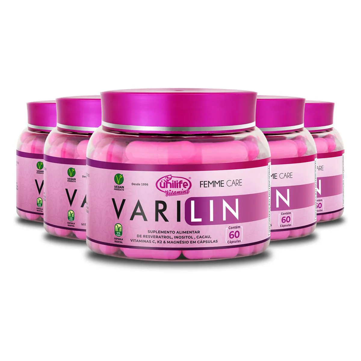 Kit 5 Varilin Femme Care Vegano Unilife 60 Cápsulas 600Mg