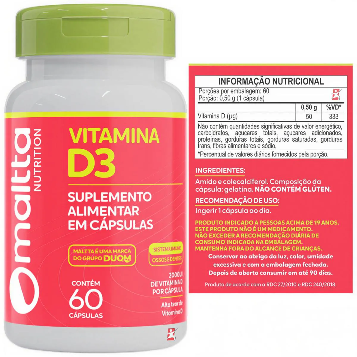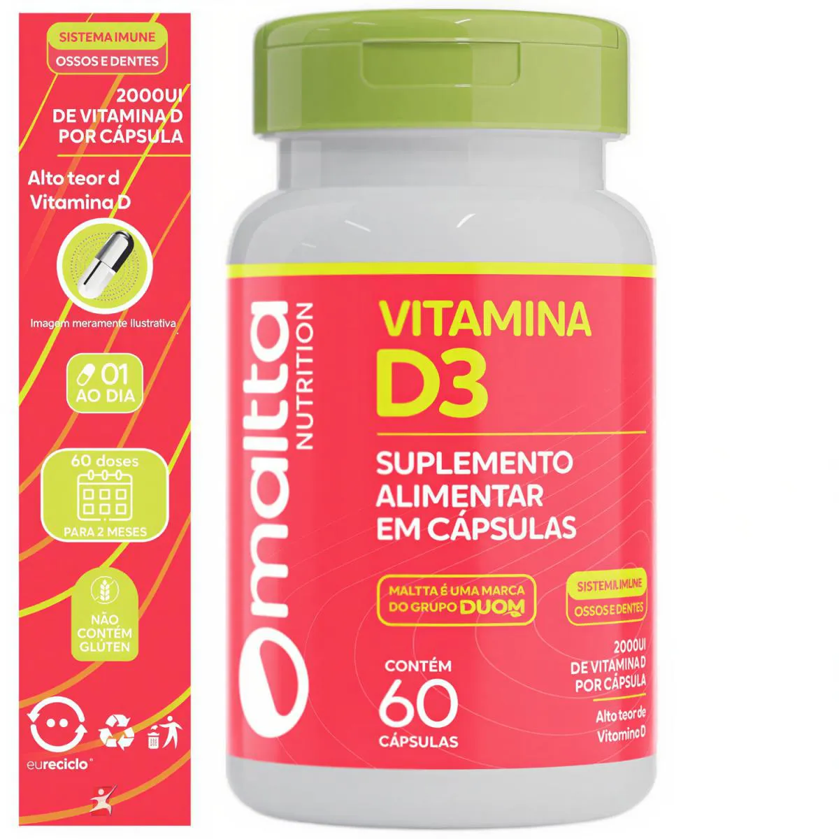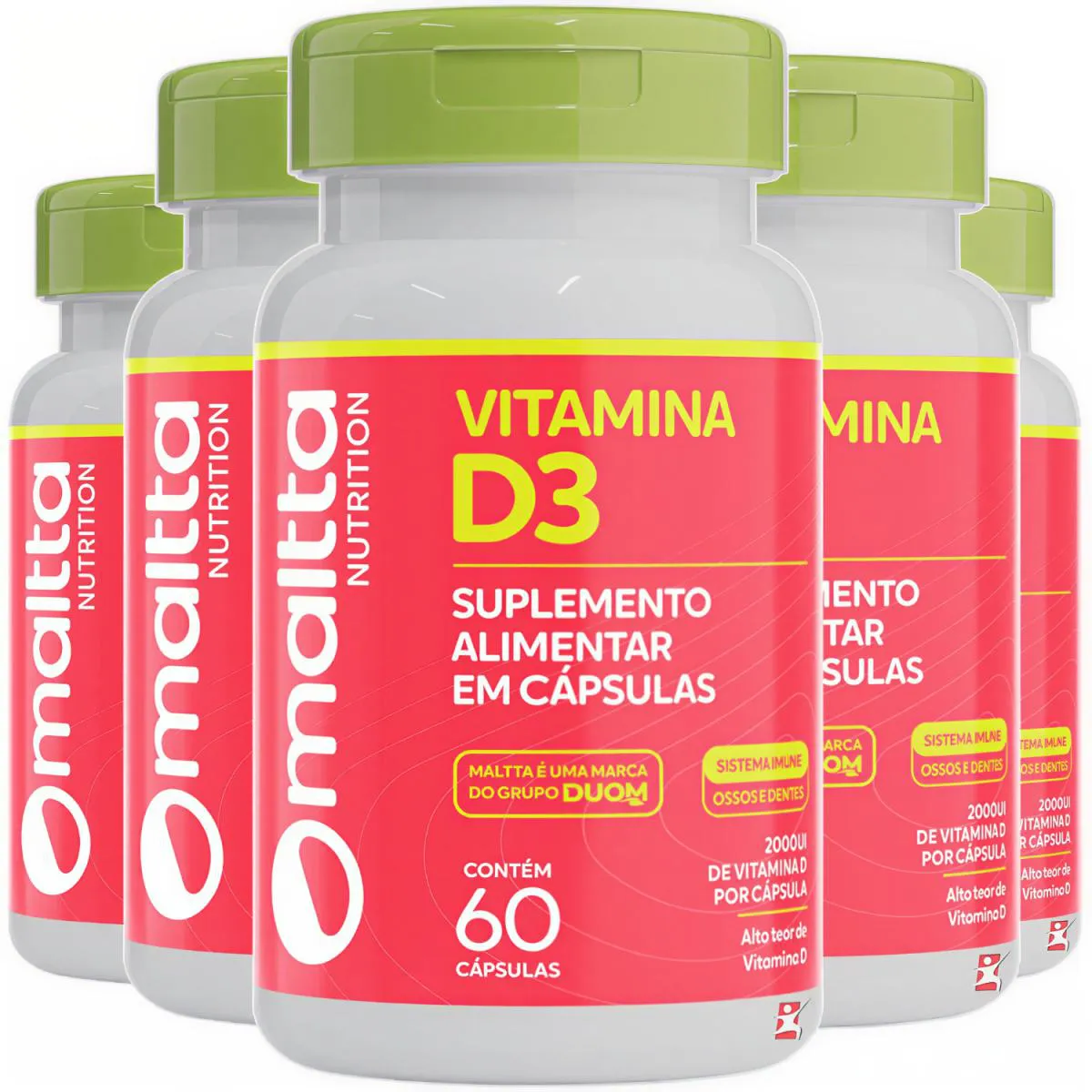 Kit 5 Vitamina D3 Concentrada 2000Ui Colecalciferol Total 300 Cápsulas - Maltta Nutrition