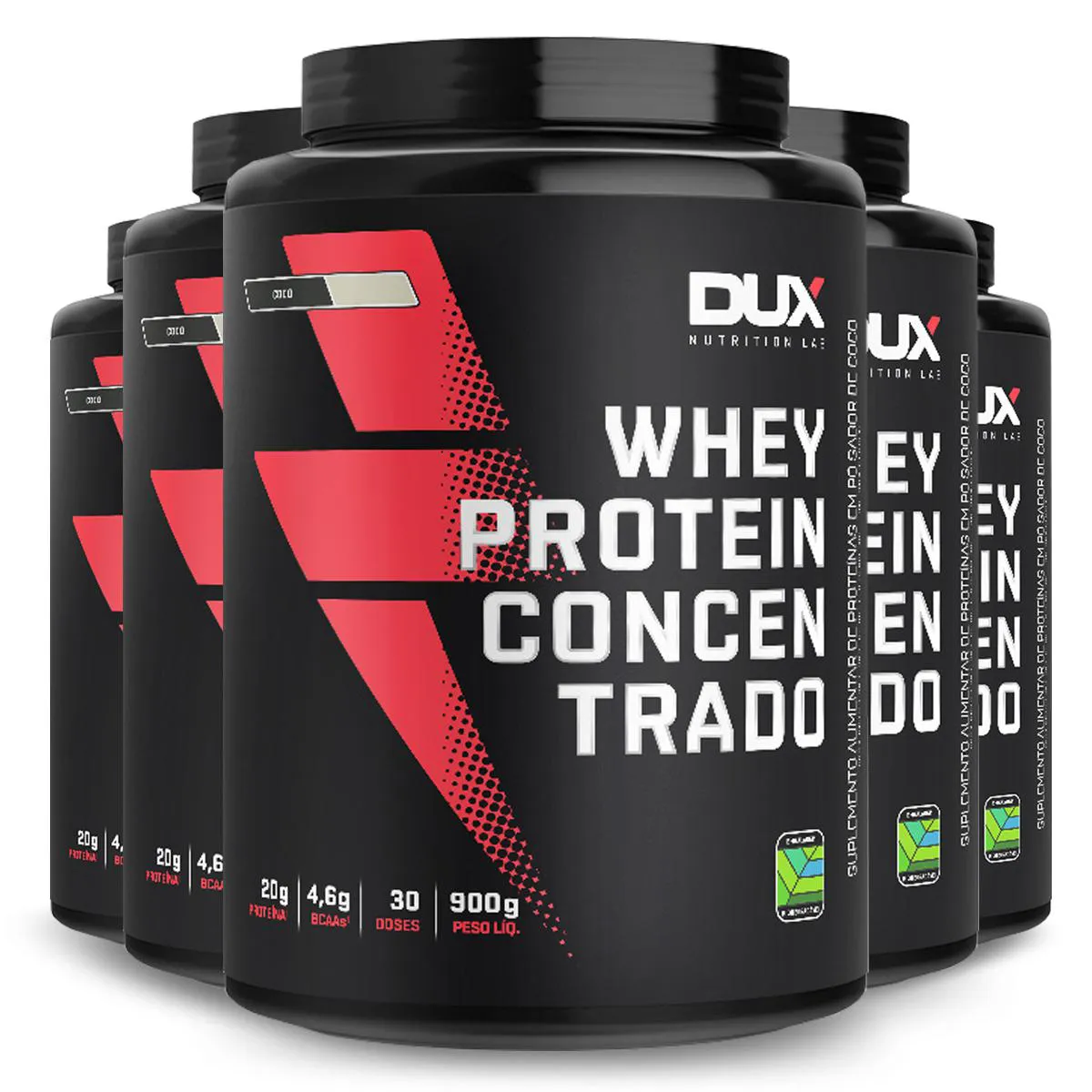 Kit 5 whey protein Concentrado Dux Coco 900g