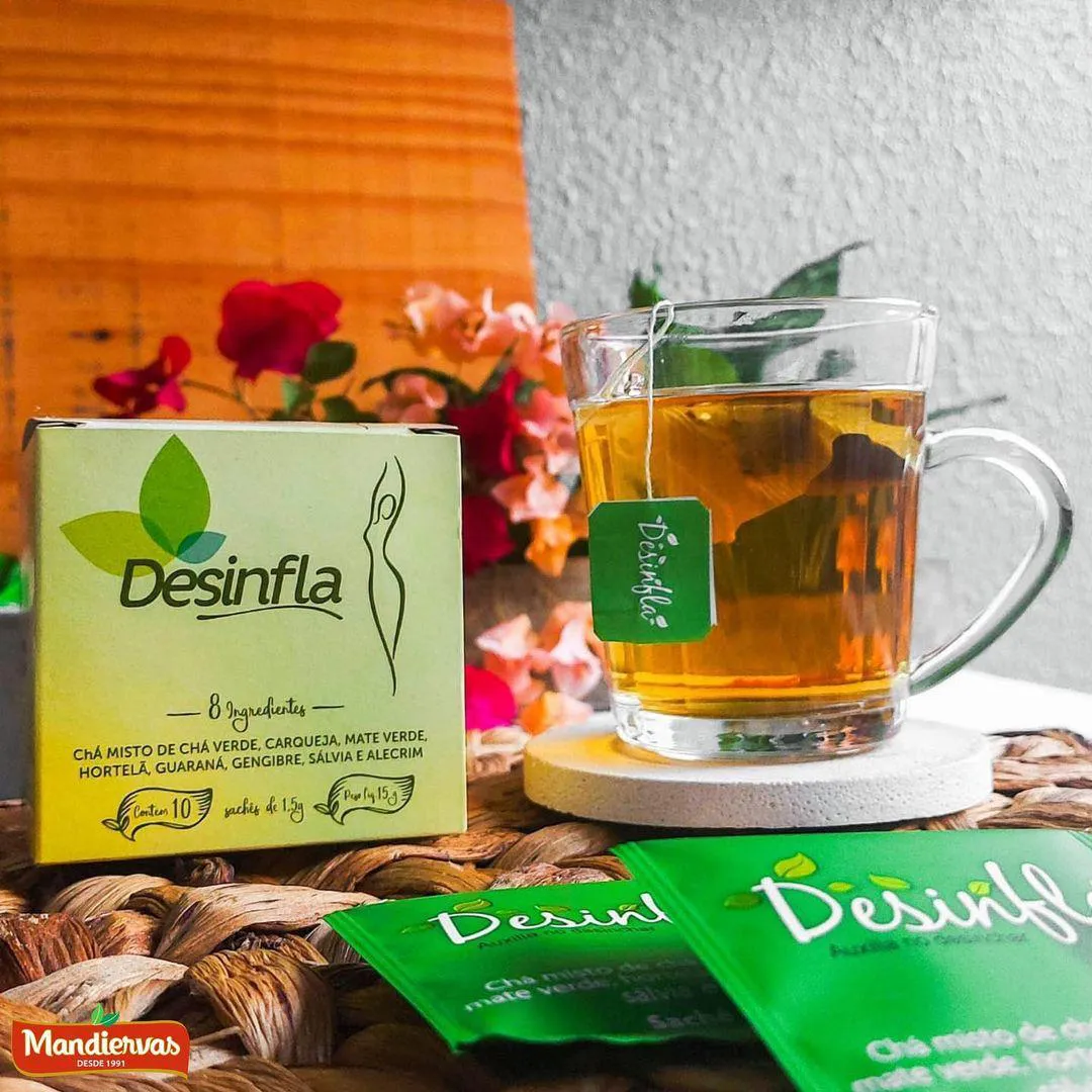 Chá Desinflá o seu aliado no dia a dia. É um composto de ervas e folhas, que auxiliam na redução do inchaço, medidas, e eliminam as toxinas do organismo de maneira totalmente natural, livres de aditivos e conservantes.