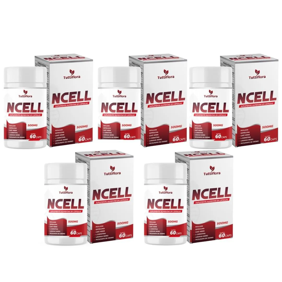 Kit 5x NCELL (Psyllium, Espirulina, Café Verde, L-Carnitina, Laranja Moro e Cromo) 60 Cápsulas Tuttiflora