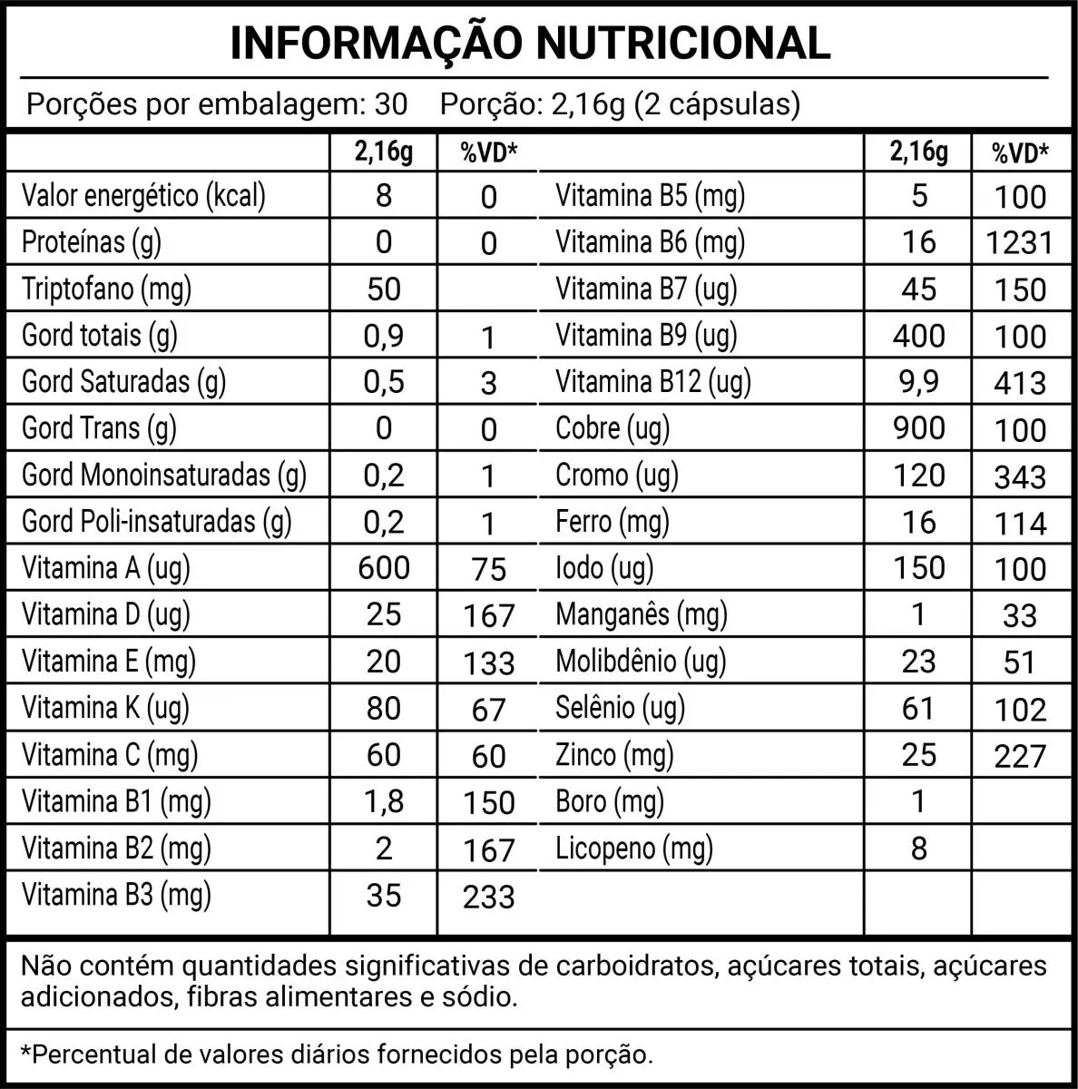 - Suporte nutricional completo com diversos minerais e vitaminas essenciais.