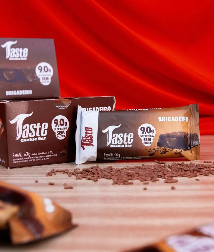 Taste Cookie Bar Sabor Brigadeiro, o mais novo lançamento! Essa barrinha combina o sabor clássico e marcante do brigadeiro com os benefícios de uma alimentação saudável. Feita para quem busca praticidade, sabor e nutrição, ela é a escolha perfeita para o dia a dia.