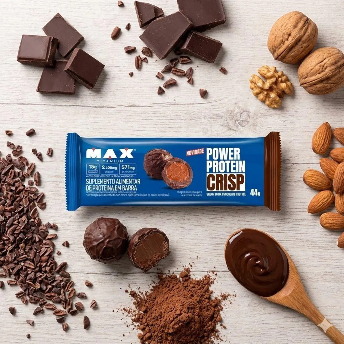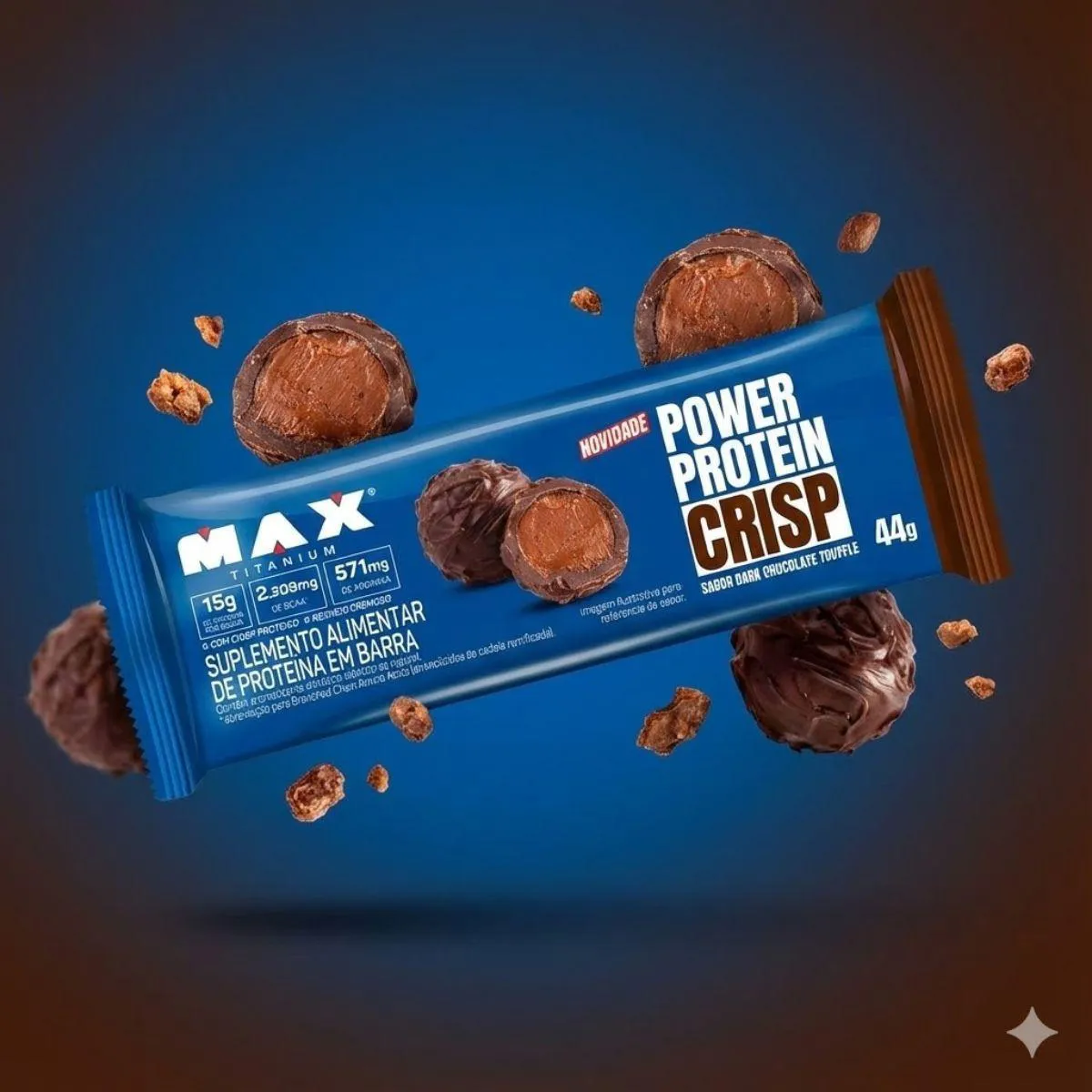 KIT 6 BARRA PROTEICA POWER PROTEIN DARK chocolate TRUFFLE 15G DE PROTEÍNA MAX TITANIUM