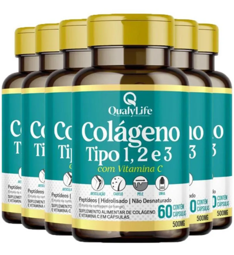 Kit 6 Colageno Tipo 123 500Mg 60 Capsulas - Qualylife A