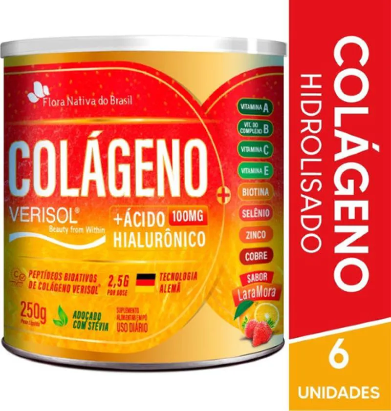 Kit 6 Colageno Verisol e Acido Hialuronico 250G Laramora - Flora Nativa A