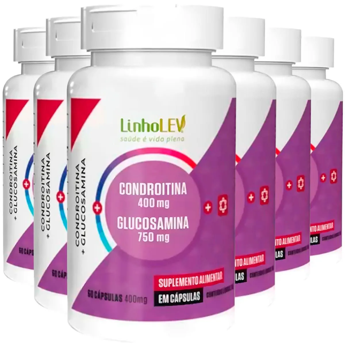 Kit 6 Condroitina e Glucosamina 400Mg 60 Capsulas - Linho Lev