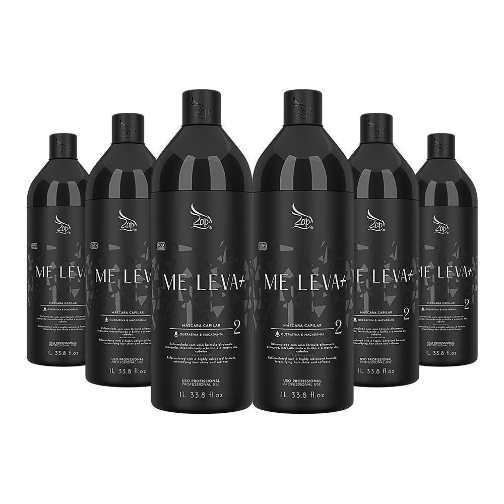 A escova progressiva Me Leva Black Passo 2 é um tratamento capilar desenvolvido para proporcionar alisamento eficaz e cuidado intensivo aos fios danificados. Formulada com ingredientes de alta qualidade, sua composição inclui:? Óleo de Macadâmia e Óleo de Coco: nutrem profundamente os cabelos, devolvendo os nutrientes perdidos, promovendo brilho intenso, maciez e alinhamento dos fios, sem deixá-los pesados ou oleosos.? Aloe Vera: possui enzimas que removem células mortas, proporcionando hidratação profunda aos fios.? Ceramidas: extraídas de grãos de soja e sementes de girassol, mantêm a integridade da proteína capilar, conferindo textura suave, maciez e brilho natural.? Sericina: proteína derivada da seda que, ao se ligar com a queratina, forma um filme natural protetor nos cabelos, deixando-os mais sedosos.Este produto é ideal para quem busca cabelos lisos, hidratados e com aspecto natural. A aplicação deve ser realizada por um cabeleireiro, seguindo as instruções fornecidas para garantir resultados satisfatórios. Além disso, a Escova Progressiva Me Leva Black é com outros processos químicos e permite que os cabelos sejam lavados imediatamente após sua aplicação.Observações Importantes:? Não recomendado para gestantes, lactantes e crianças.? Evitar o uso em clientes com couro cabeludo sensível, irritado ou ferido.? Realizar teste de mecha antes da aplicação completa.? A quantidade média a ser aplicada é de 50ml para cabelos de tamanho médio.Para obter melhores resultados e preservar a saúde dos fios, é essencial seguir as orientações de uso e cuidados pós-tratamento.ATENÇÃOAS IMAGENS SÃO MERAMENTE ILUSTRATIVAS E PODEM SOFRER VARIAÇÕES DE COR E PEQUENOS DETALHES DE ACORDO COM O SEU MONITOR, ILUMINAÇÃO DO AMBIENTE E ATÉ MESMO A SUA PERCEPÇÃO 6 Escovas Progressivas Me Leva Black Passo 2 1 Litro