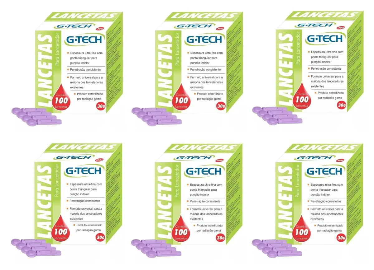Kit 6 Lanceta para Lancetador Fina G-tech Glicemia 30g 100Un