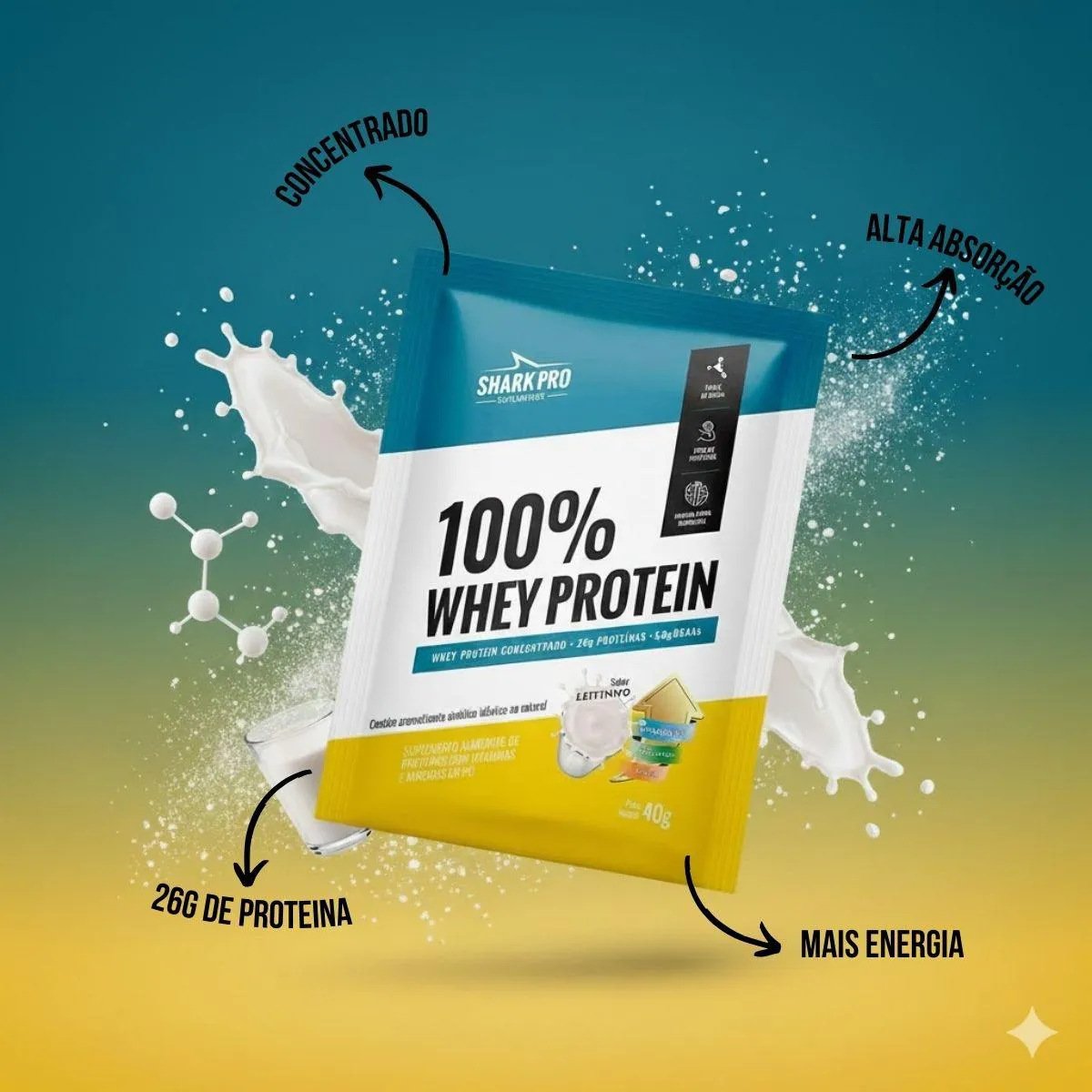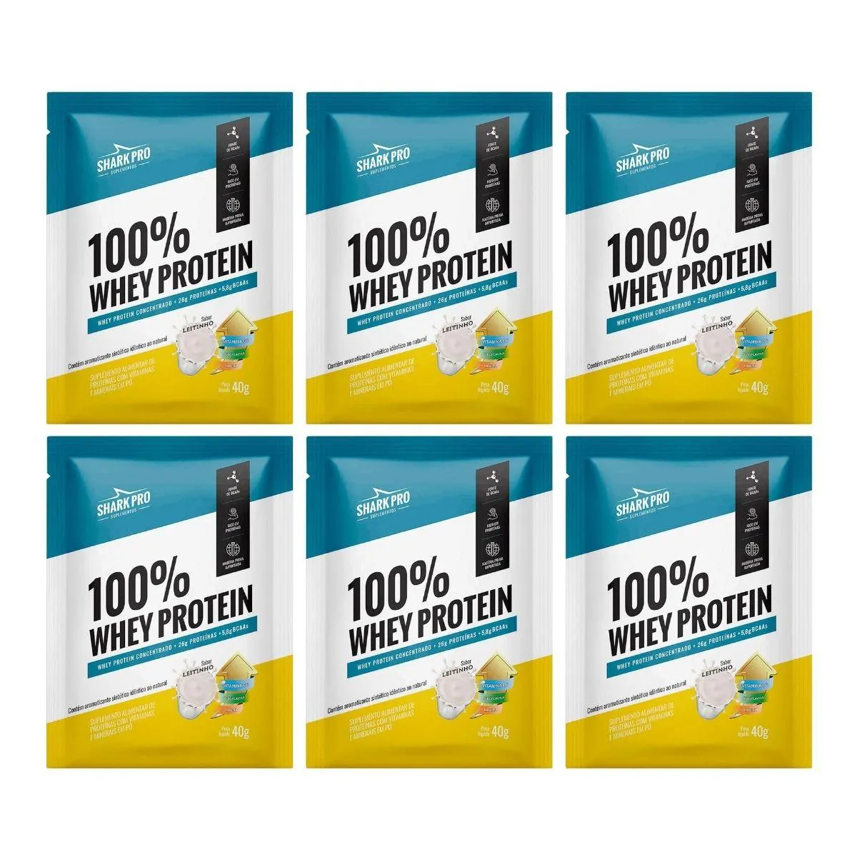 Kit 6 Sache 100% Whey Protein 26G Proteina Leitinho 40G Shark Pro
