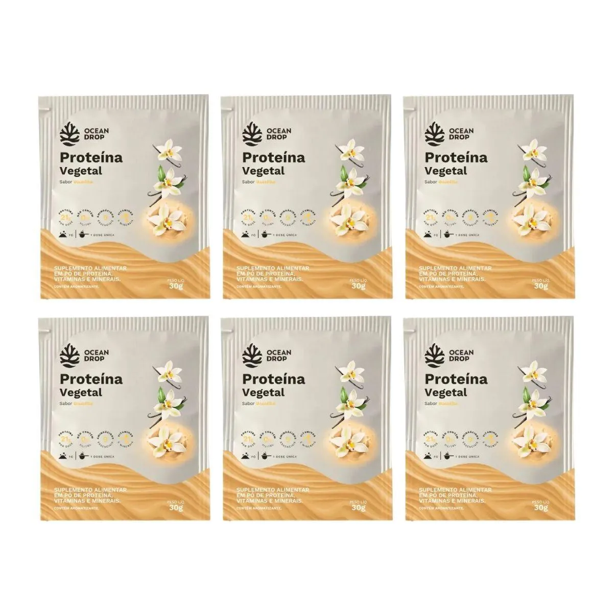Kit 6 Sache Proteina Vegetal 21G Proteina Baunilha 30G Vegano Ocean Drop