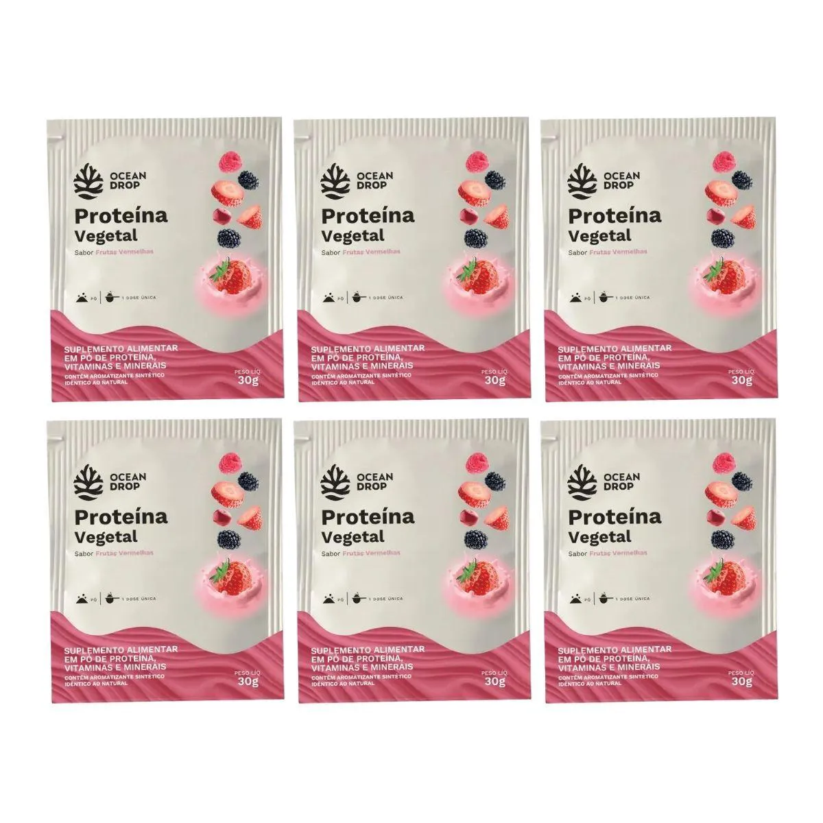 Kit 6 Sache Proteina Vegetal 21G Proteina Frutas Vermelhas Vegano 30G Ocean Drop