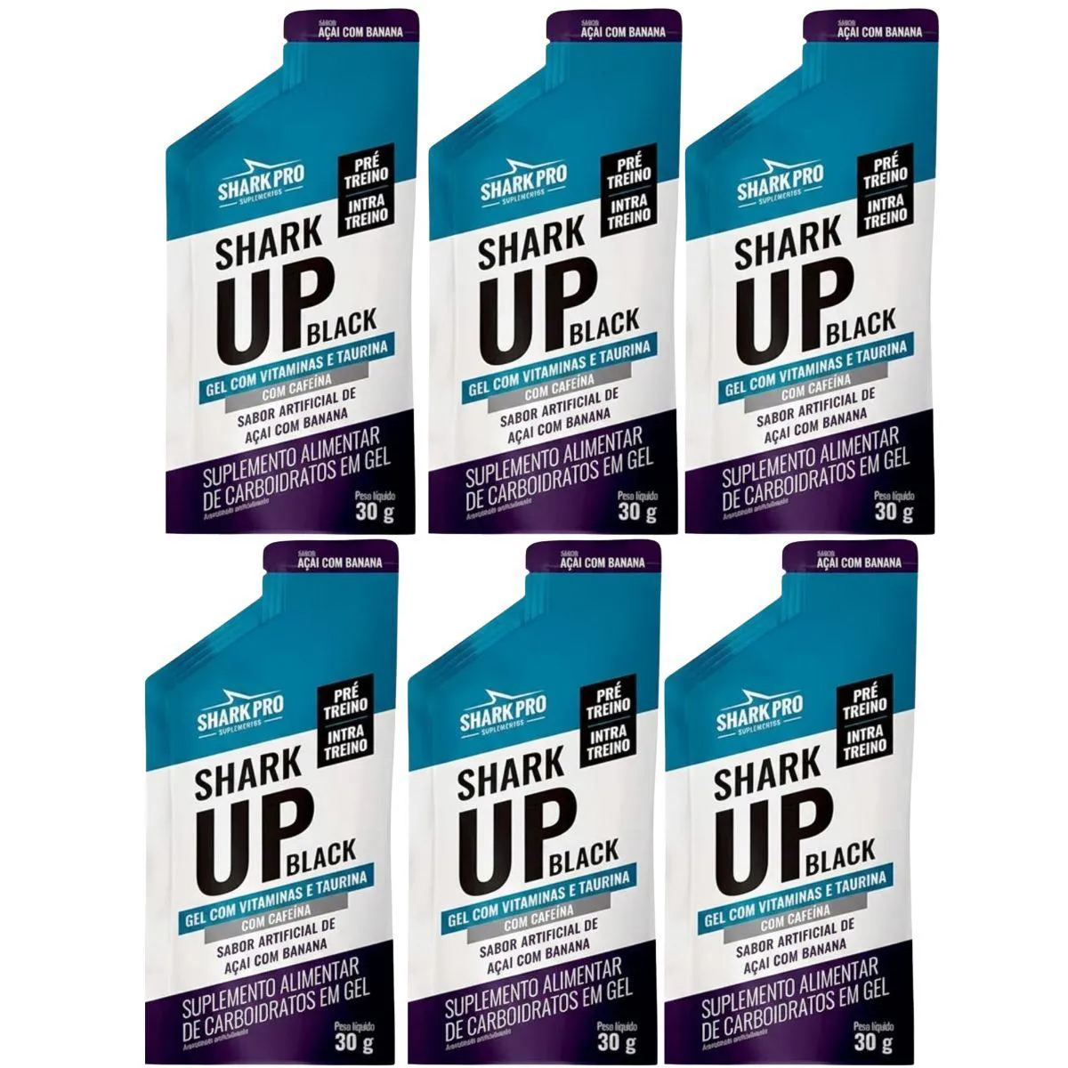 KIT 6 SHARK UP GEL AÇAÍ COM BANANA 30G SHARK PRO ENERGIA E FOCO