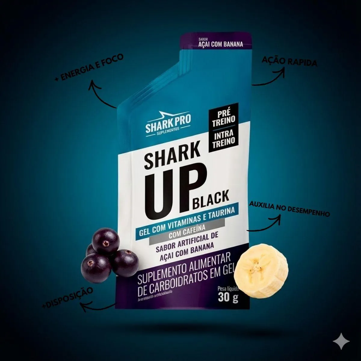 corpo e manter o ritmo. Sua fórmula em gel proporciona consumo rápido e funcional, auxiliando no fornecimento de energia antes ou durante o exercício. A combinação de açaí com banana entrega um sabor marcante e agradável, tornando a ingestão mais confortável mesmo em momentos de maior esforço. É uma excelente opção para quem procura um pre treino foco e energia de forma prática, sem necessidade de preparo. Entre os principais diferenciais estão a praticidade do uso imediato, a embalagem individual que facilita o transporte e a versatilidade para diferentes modalidades esportivas. O Shark Up Gel pode ser utilizado em atividades como musculação, corrida, ciclismo ou esportes ao ar livre, sempre que houver necessidade de mais foco e energia para manter o desempenho. A sugestão de consumo é ingerir 1 sachê de 30 g cerca de 15 a 30 minutos antes da atividade física ou durante o treino, conforme a necessidade individual. O consumo é direto do sachê, ideal para uso em movimento e sem interrupções. O kit contém 6 sachês individuais de 30 g cada, suplemento em gel com sabor açaí com banana, desenvolvido para complementar a alimentação em rotinas ativas. Garanta agora o Kit 6 Shark Up Gel Açaí com Banana Shark Pro, aproveite o preço especial e tenha sempre à mão uma opção prática de pre treino foco e energia. Estoque limitado.