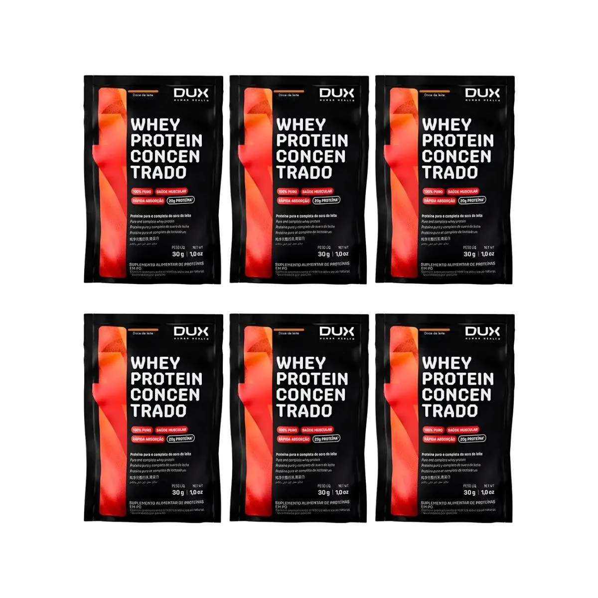 Kit 6 Sache Whey Protein 20G Proteina Concentrado Puro Doce de Leite Dux
