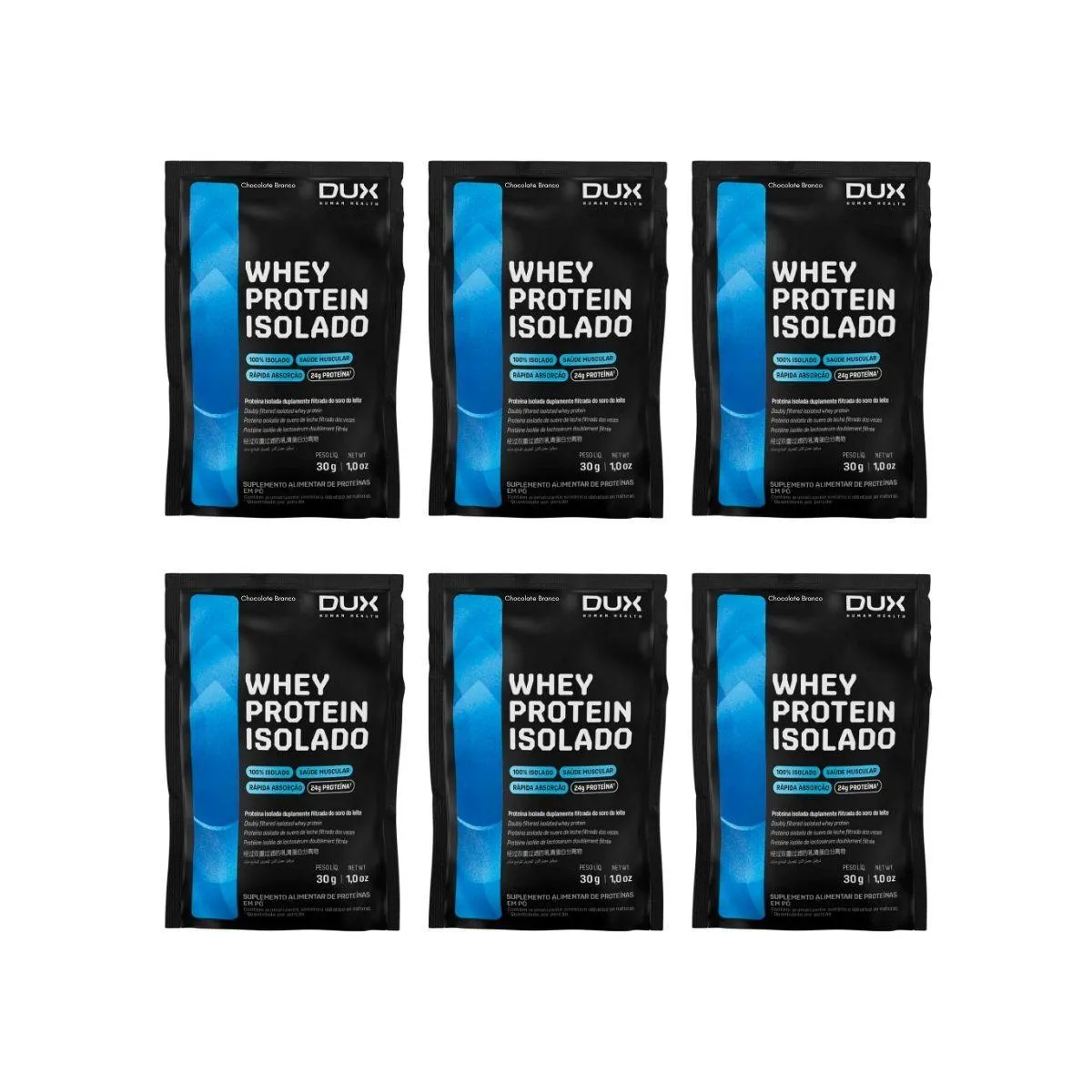 Kit 6 Sache Whey Protein 24G Proteina Isolado Puro Chocolate Branco Dux