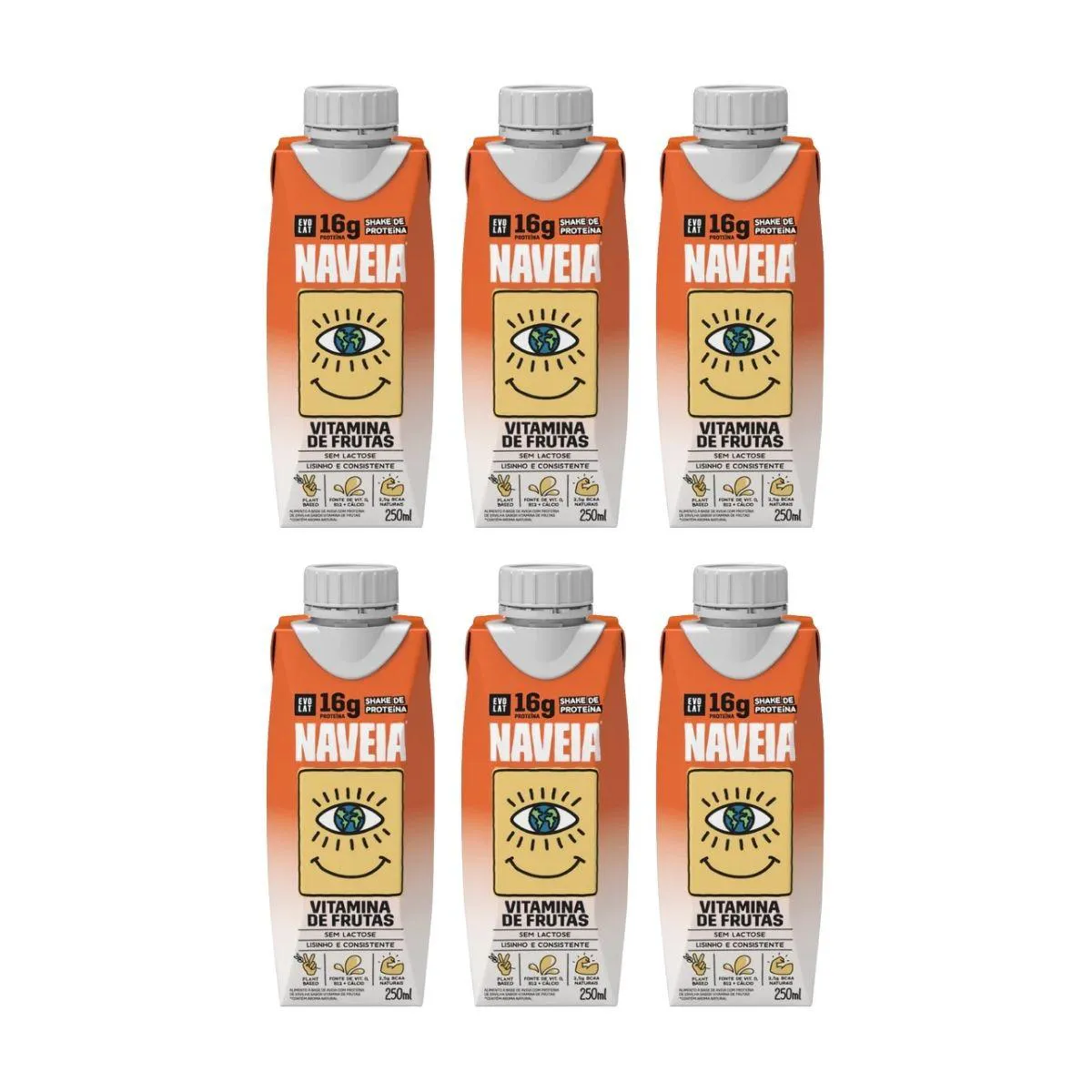 Kit 6 Shake Naveia 16G Proteina Vitamina de Frutas Plant Based 250Ml Evolat
