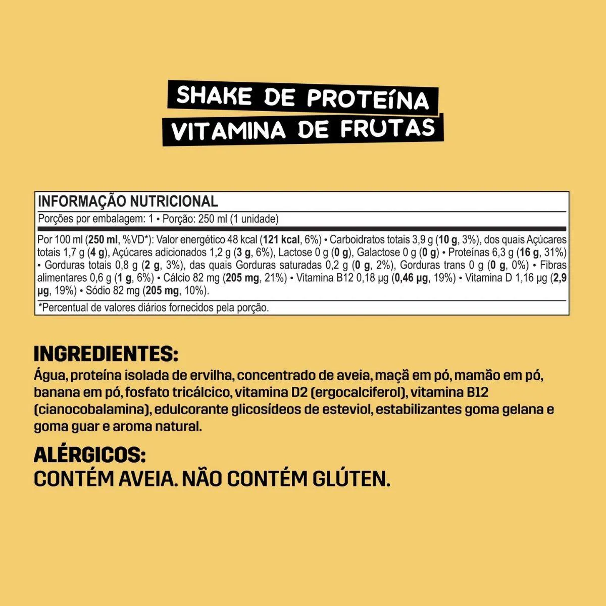 KIT 6 SHAKE NAVEIA vitamina DE FRUTAS 250ML 16G PROTEÍNA PLANT BASED Diga adeus ao sabor artificial! Chegou o shake de proteína que oferece TUDO QUE VOCÊ PRECISA com prazer e conveniência. Este blend especial é a escolha ideal para quem ama cuidar do corpo e da mente, buscando nutrição completa em um SHAKE PRÁTICO. Com TEXTURA LISINHA e SABOR MARCANTE, eleva seu bem-estar. Diferenciais do Produto (Sabor, Pureza e Tecnologia)