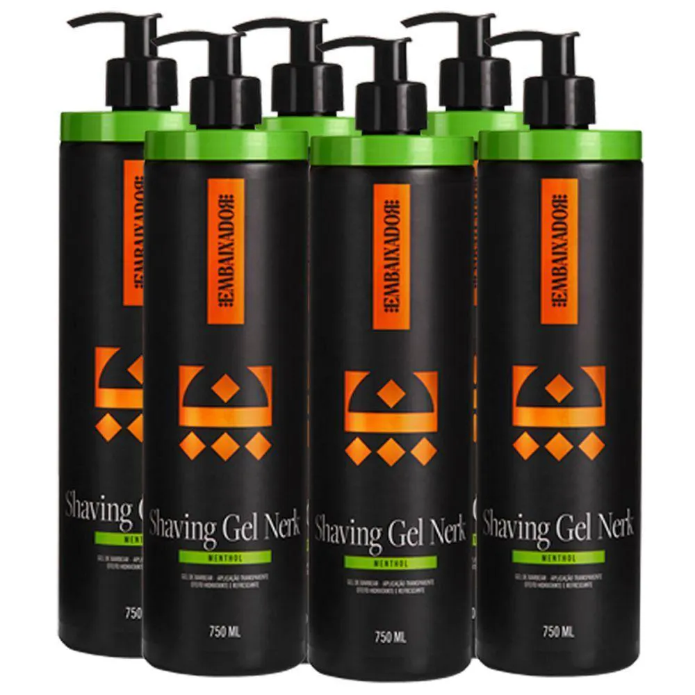Kit 6 Shaving Gel De Barbear Nerk Menthol Embaixador 750ml